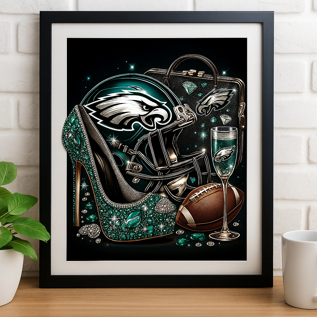 "Eagles Glam Game Day Digital Art – Luxury Football-Inspired Design with Diamonds & Accessories"