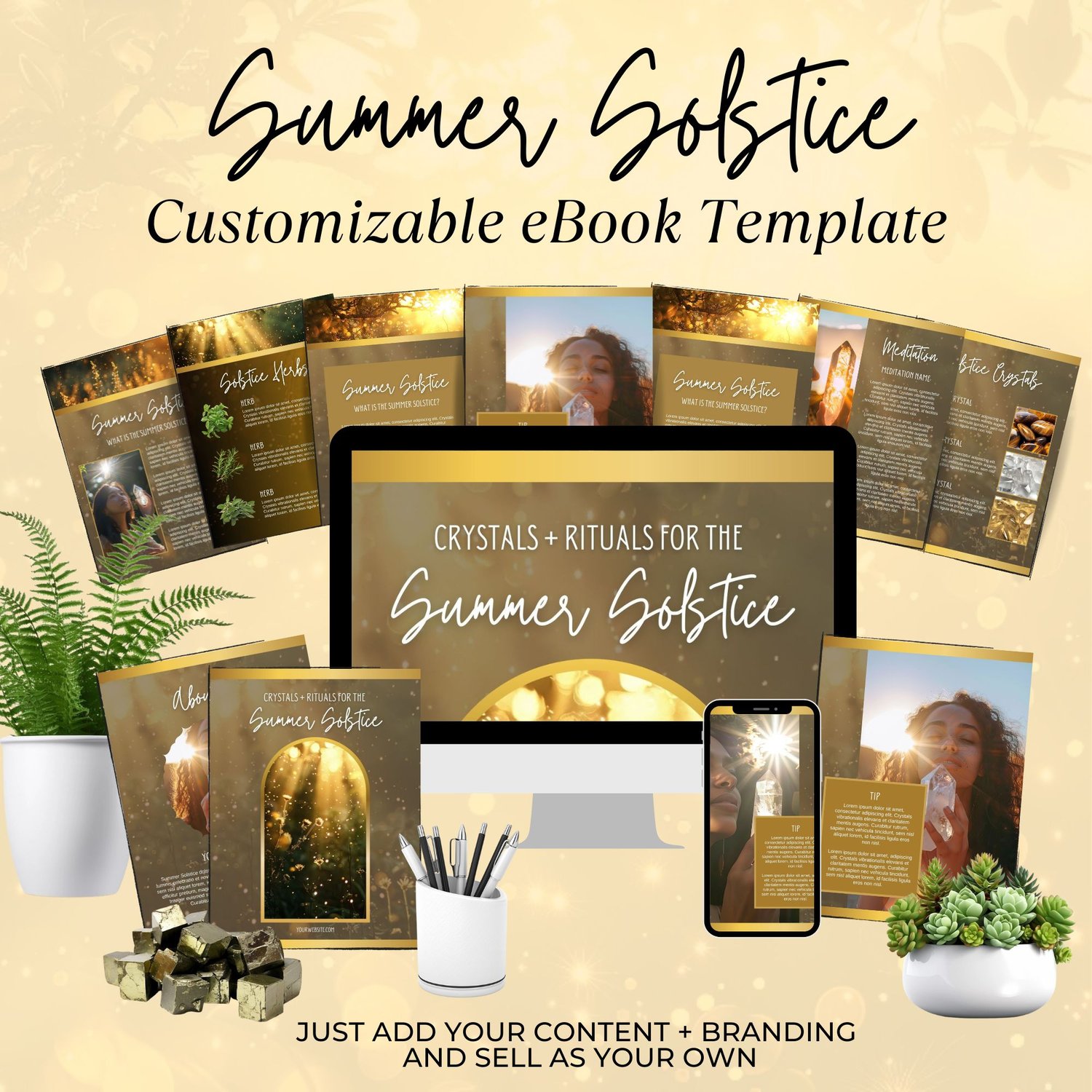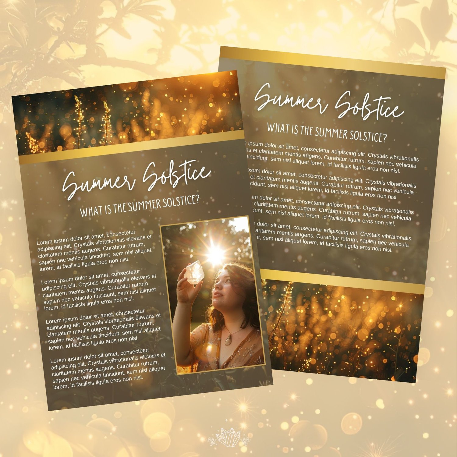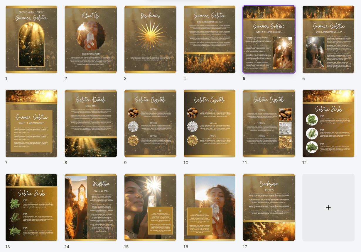 Expand your content offerings with our Canva-based Summer Solstice TEMPLATE. This 17-page template is perfect for metaphysical and crystal business owners looking to provide their audience with valuable content, rituals, meditations, and more!
