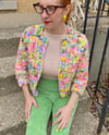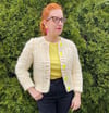 Size is buttoned. Samples shown in size 33.75, with approx. 2” / 5cm negative ease at bust.