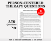 Designed to enhance client engagement and drive positive change, this therapy resource offers a collection of person-centered therapy questions. Tailored to the principles of person-centered psychotherapy, these therapy questions will guide your sessions towards productive conversations and transformative outcomes. These client-centered questions are made to elicit insightful responses and encourage clients to explore their goals and aspirations.