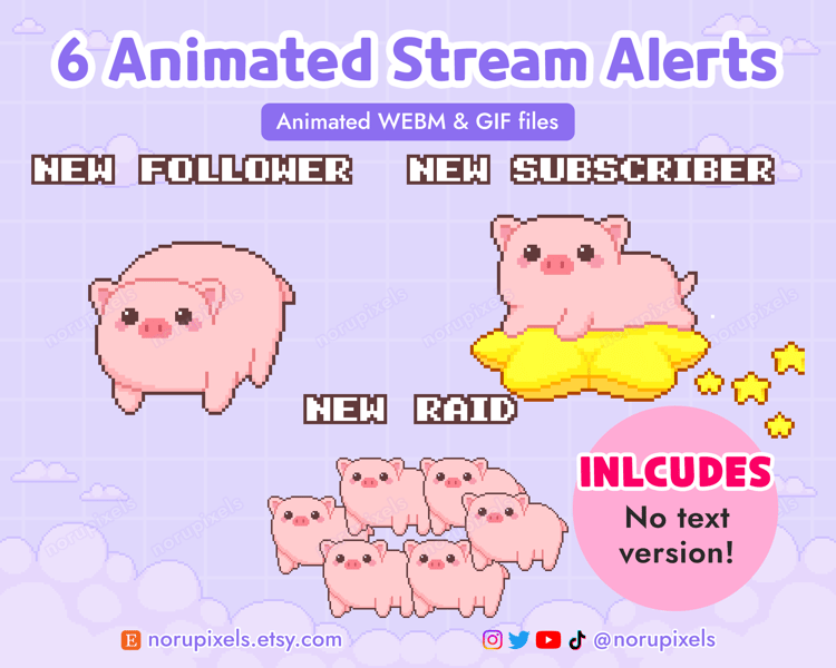 6 animated stream alerts ready to download. After purchase you will receive a .ZIP file. Unzip this to access: