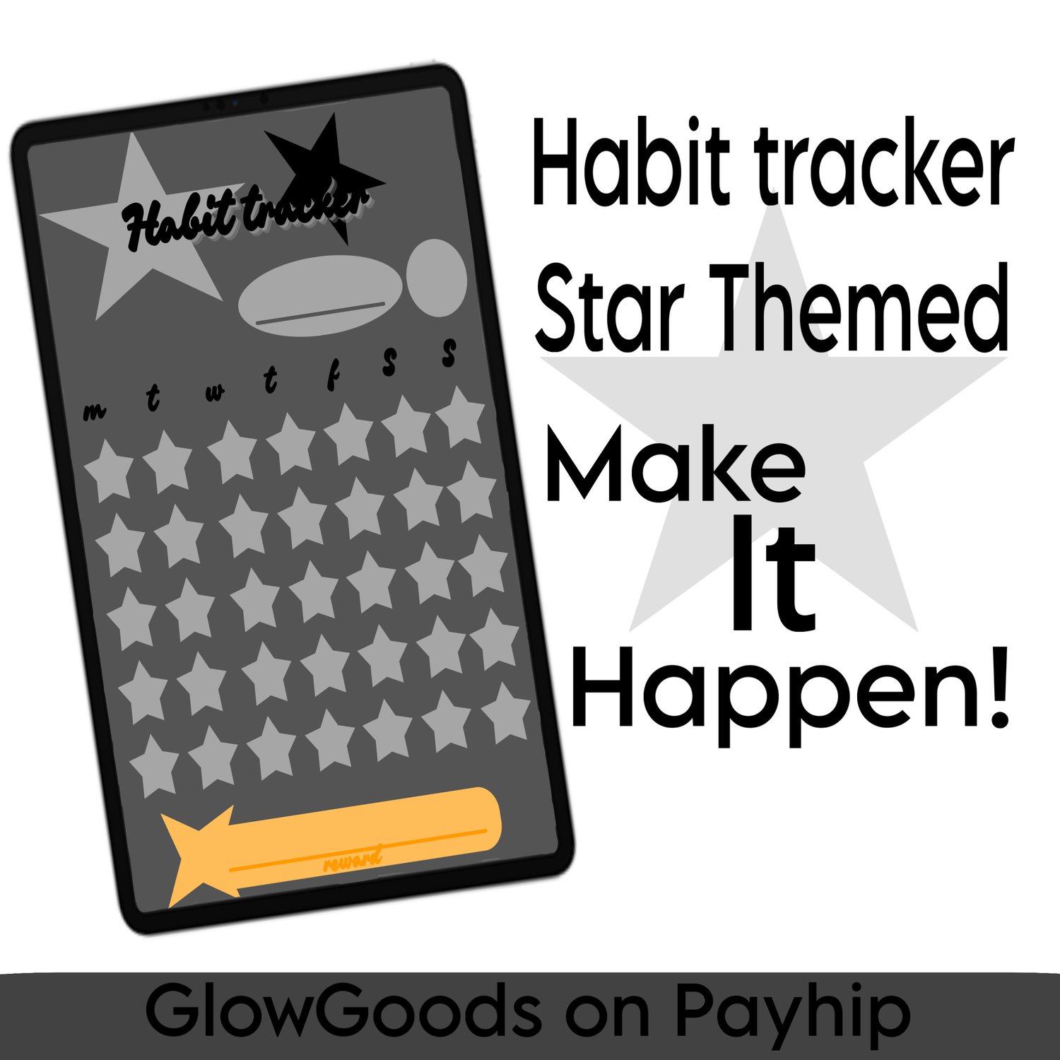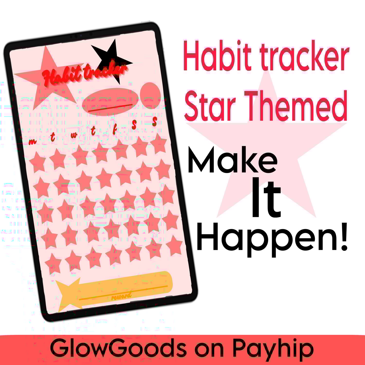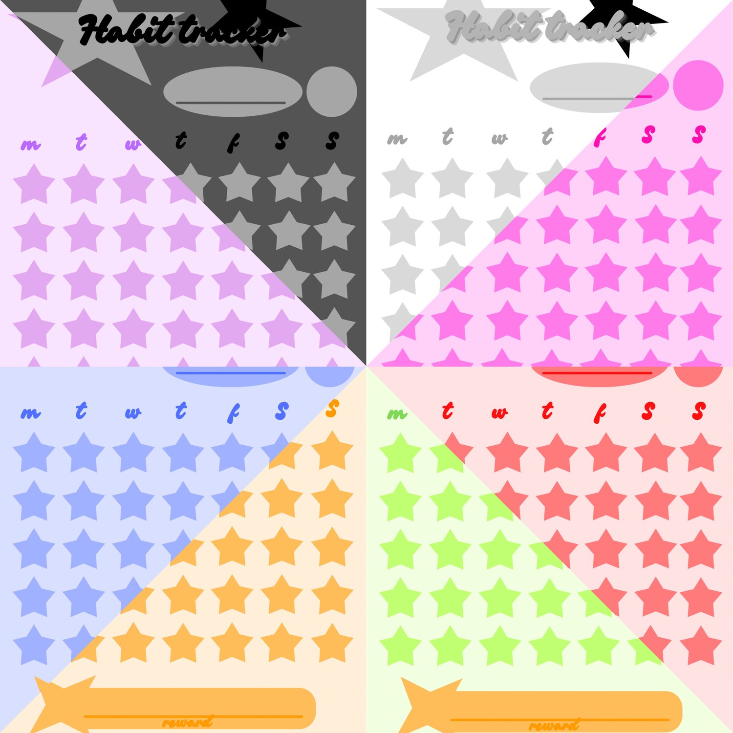 Habit tracker - Star themed - multiple colours: red, yellow, green, blue, purple, pink, white, black - GoodNotes, Notability, Noteful - PDF Download