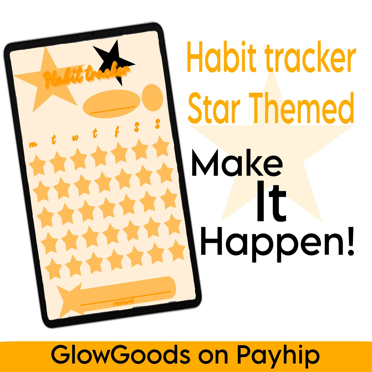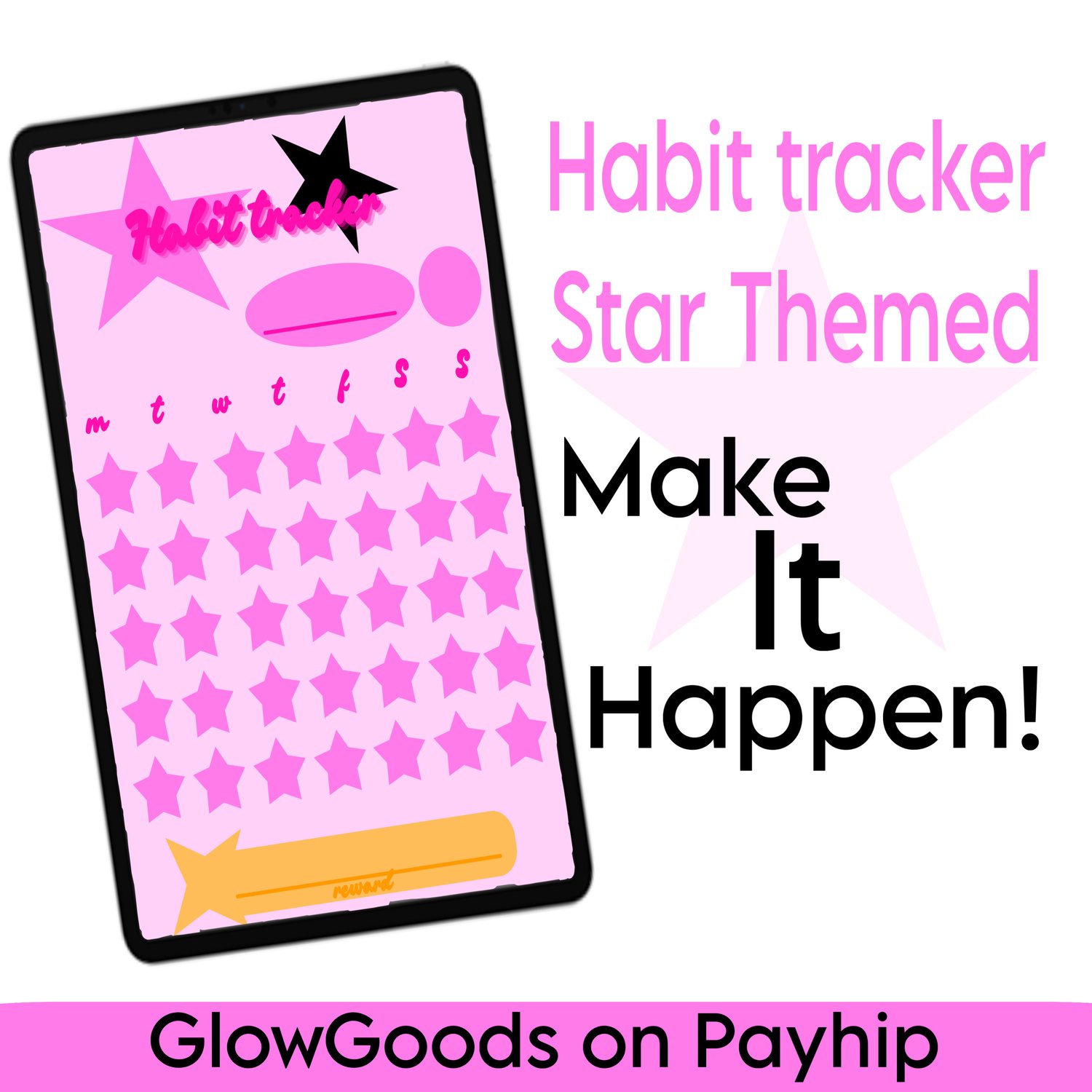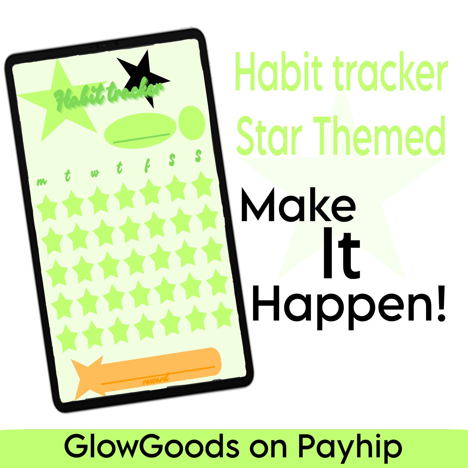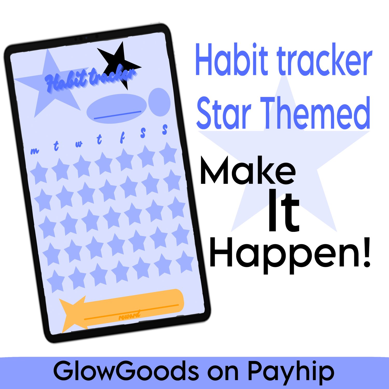 Habit tracker - Star themed - multiple colours: red, yellow, green, blue, purple, pink, white, black - GoodNotes, Notability, Noteful - PDF Download