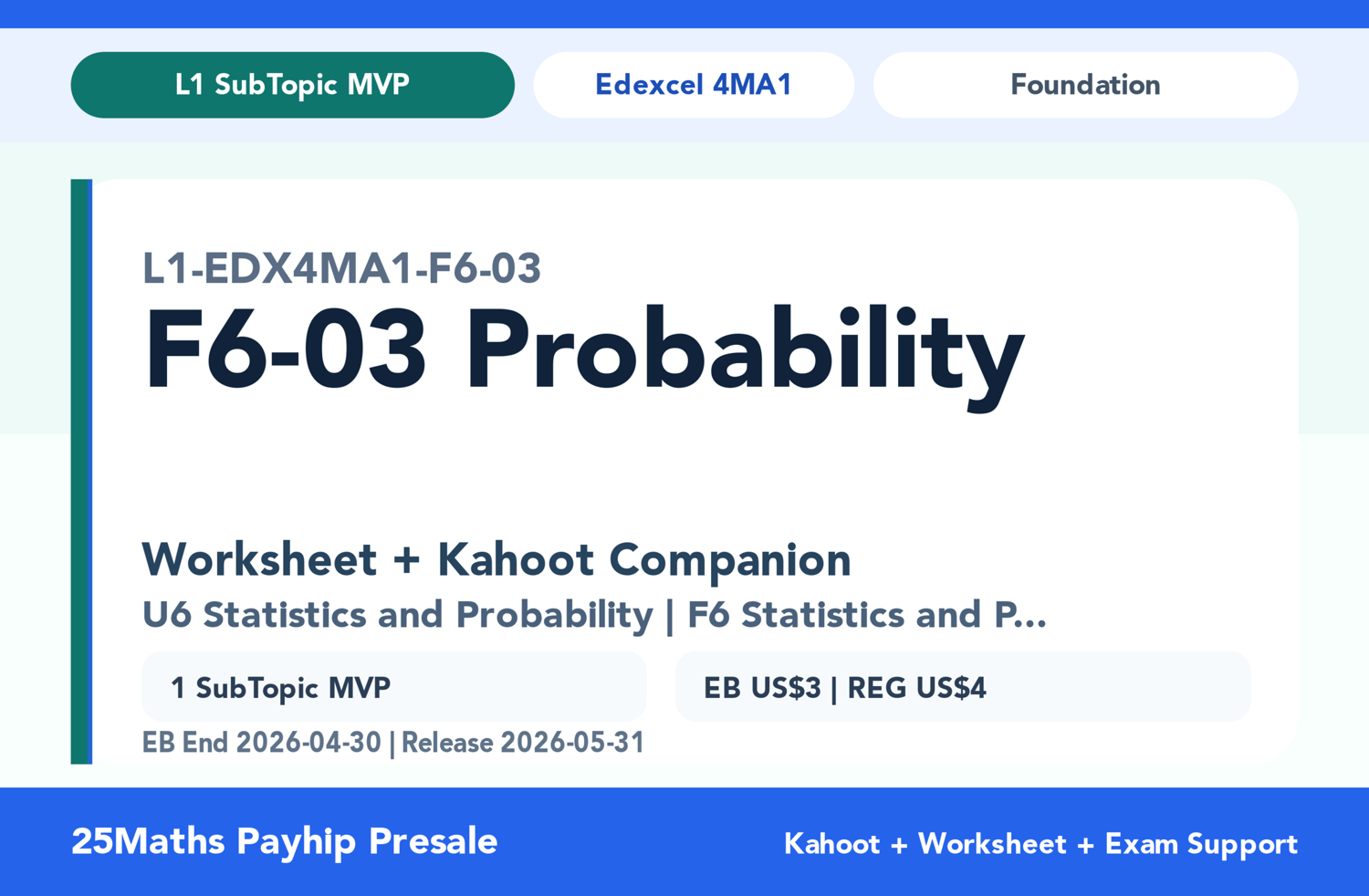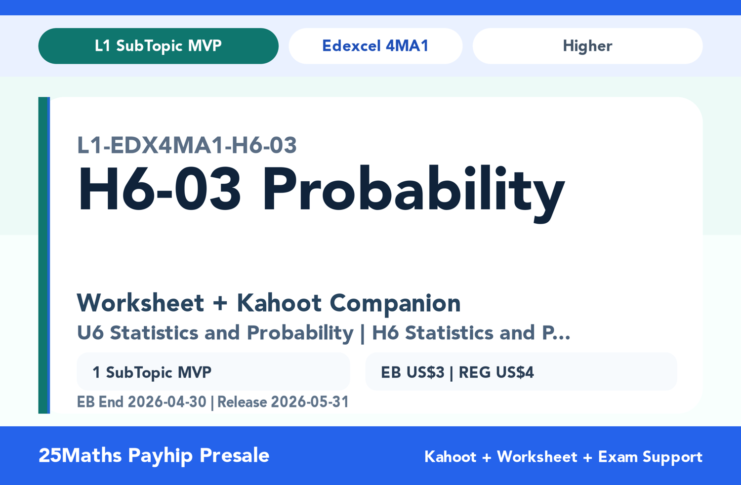 Master Probability for your Edexcel 4MA1 Higher Exam with our Interactive Practice Suite! Whether you're a student aiming for higher marks or a teacher seeking engaging classroom resources, this worksheet and Kahoot combo is directly aligned with the official Edexcel syllabus.