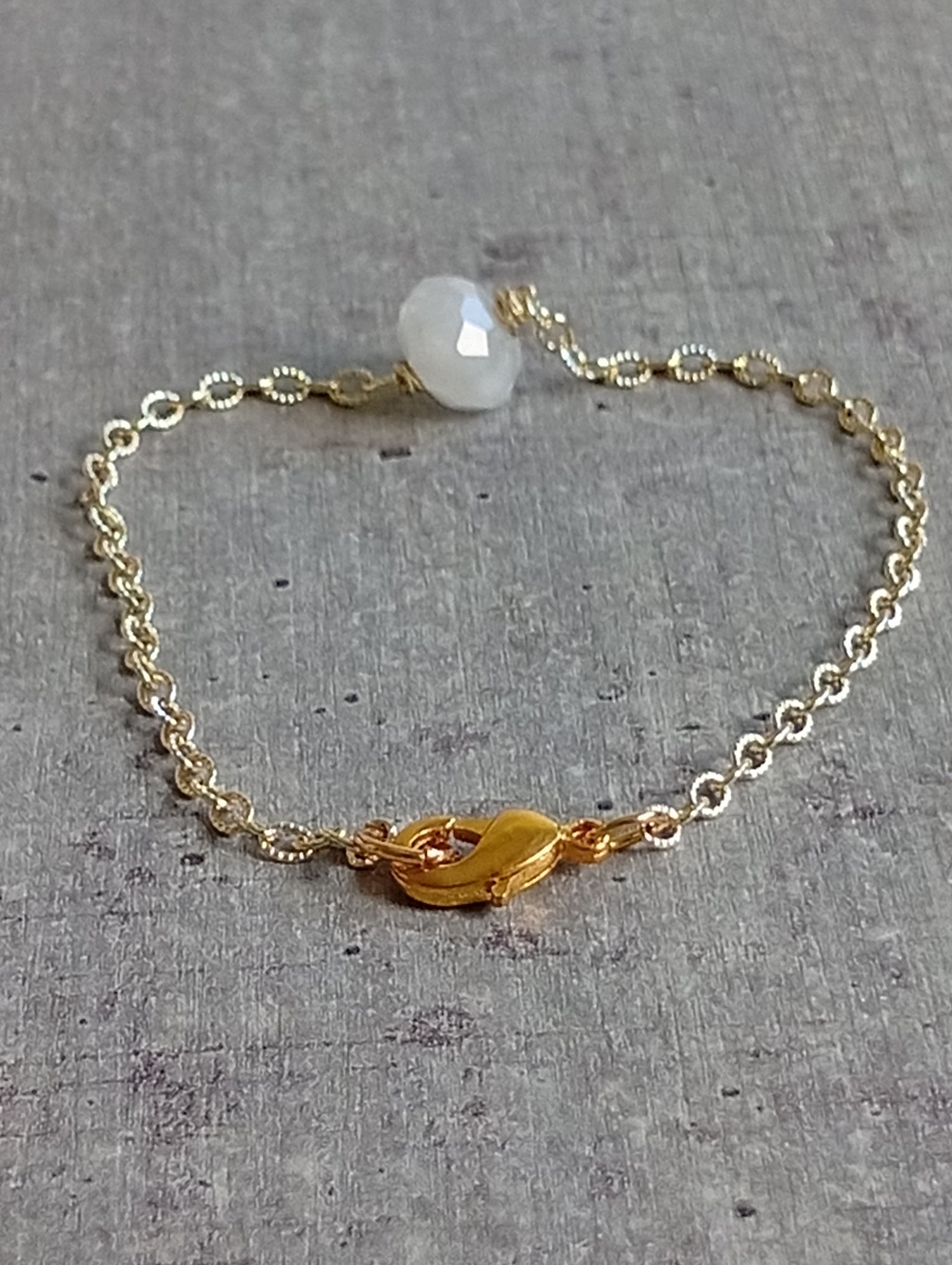Bracelet fin monté sur chaîne dorée, orné d’une pierre centrale en aigue-marine. Un bijou raffiné qui allie douceur et fluidité, invitant à la sérénité et à une communication authentique. Parfait pour celles qui souhaitent exprimer leur vérité avec calme et confiance.