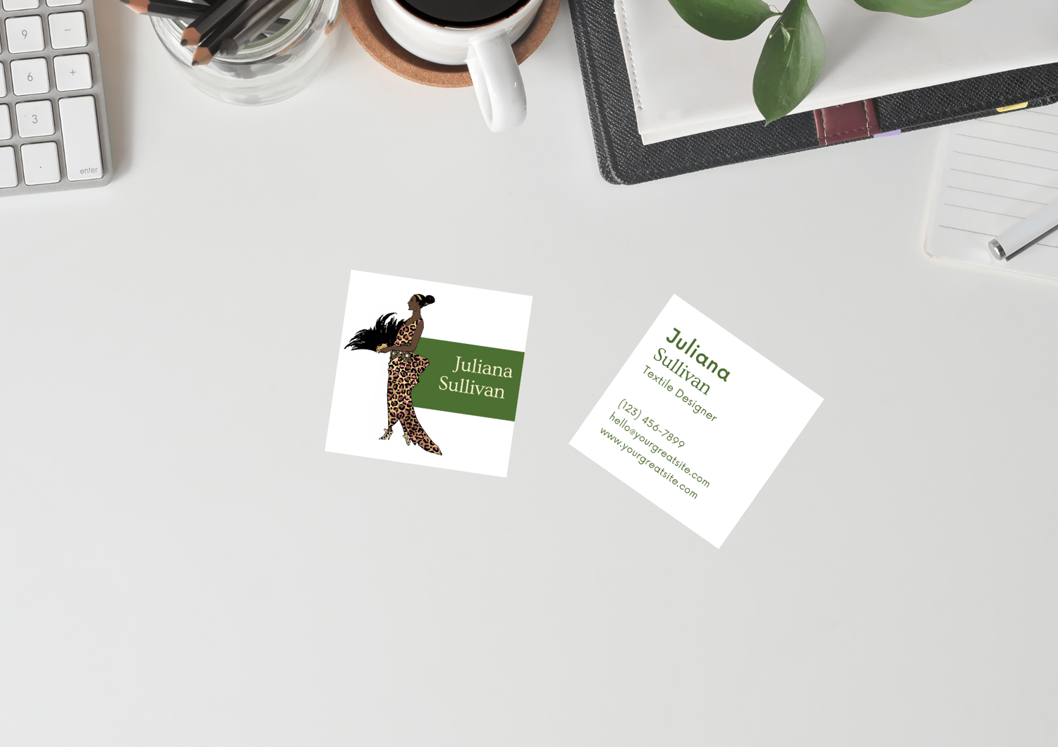 Green and white fashion square Business Card Simple, Elegant, lady fashion design Business Card. ✨💼 This green and white luxury business card with stylish font business details