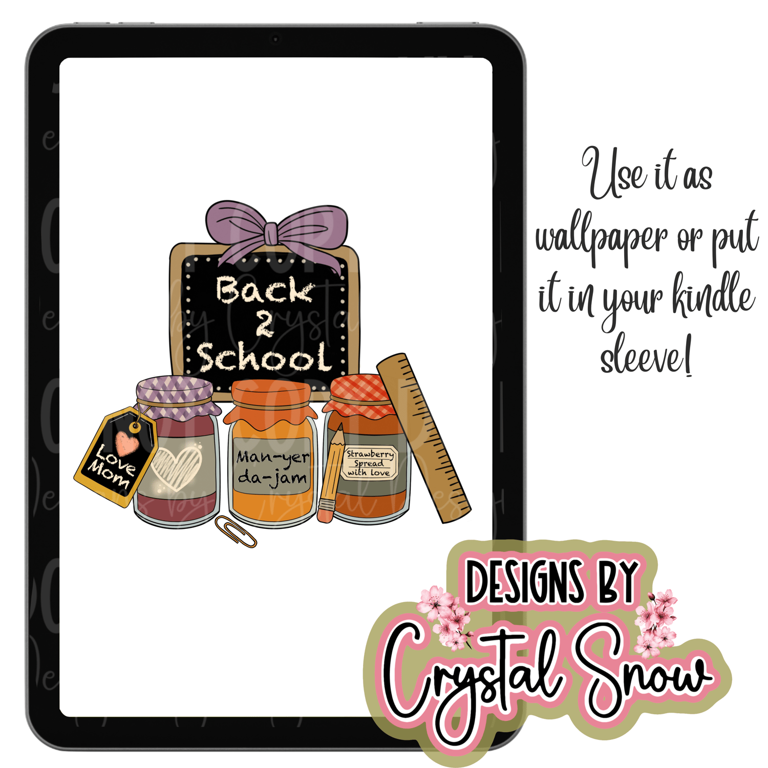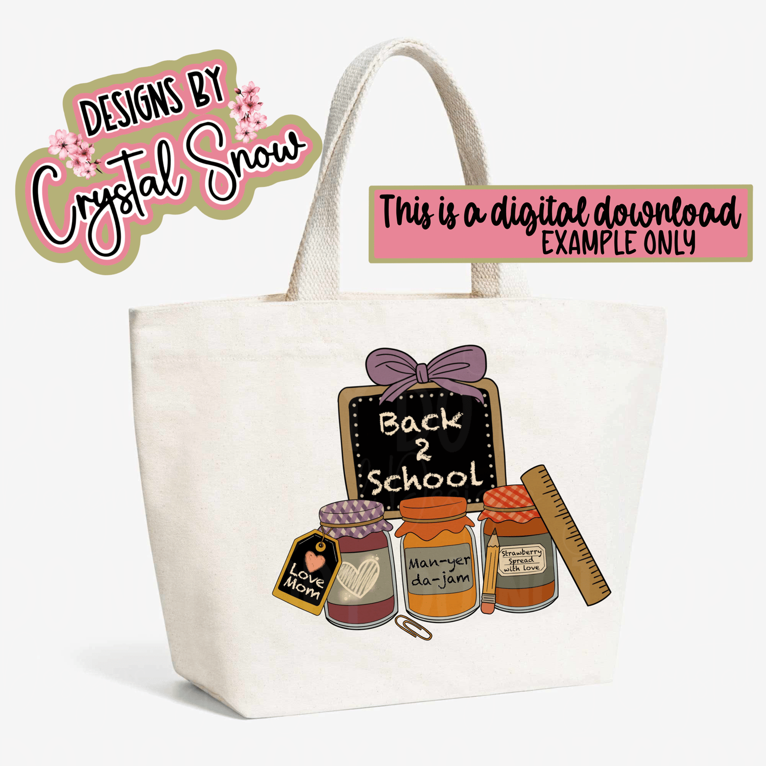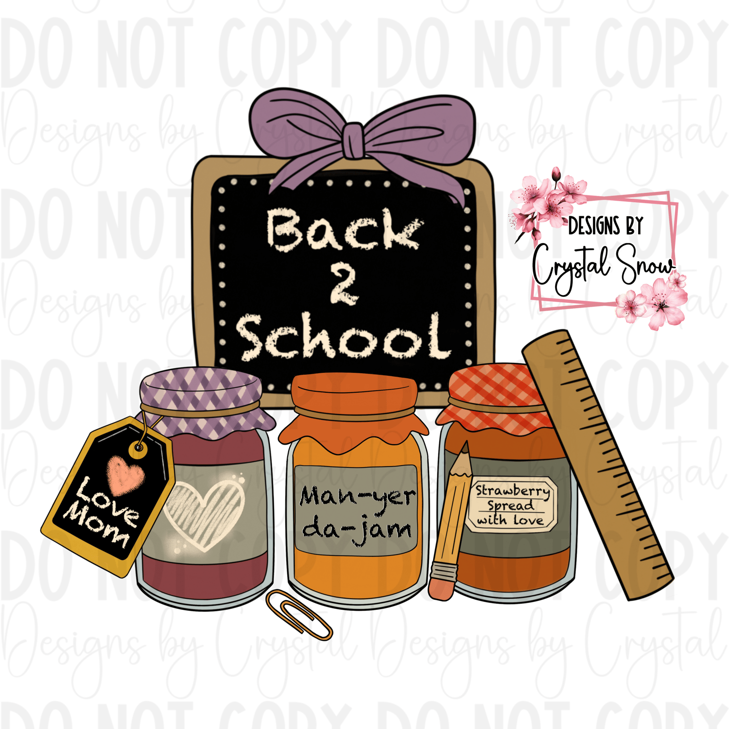 Featuring three hand-drawn jam jars labeled “Man-yer da-jam”, “Strawberry Spread with Love”, and “Love Mom”, this funny and heartwarming design is perfect for back-to-school gifts, teacher appreciation, and first-day-of-school projects.