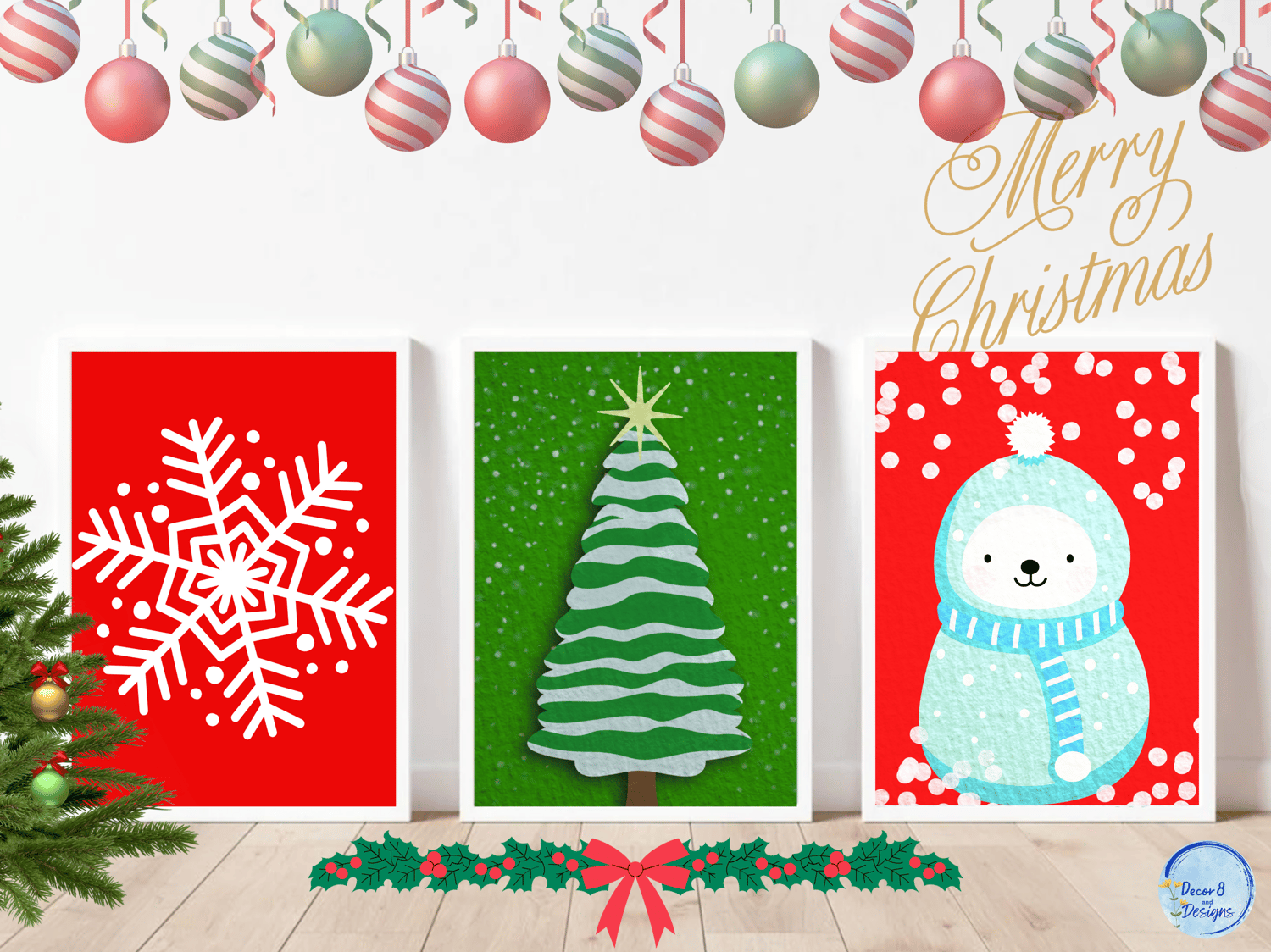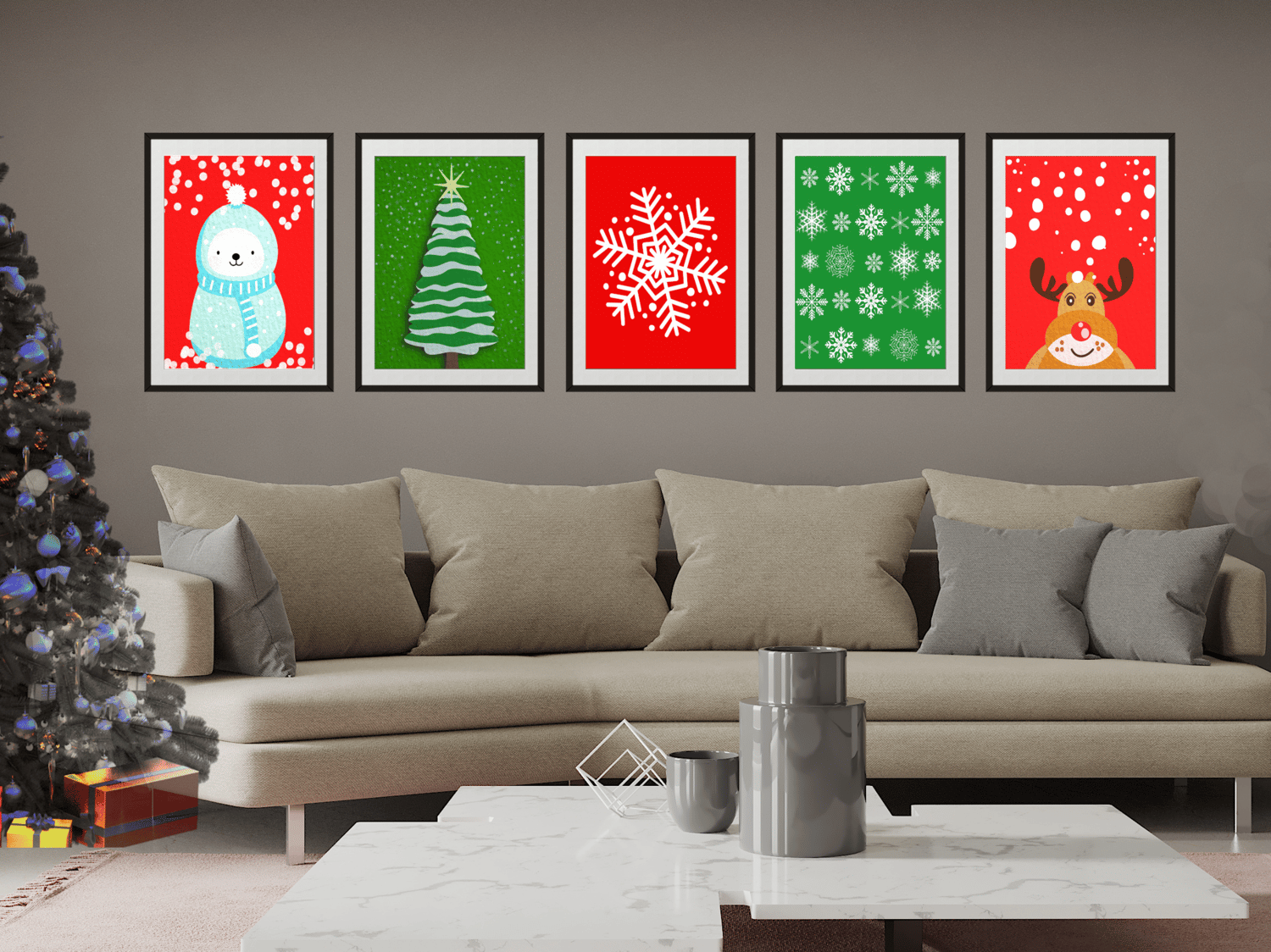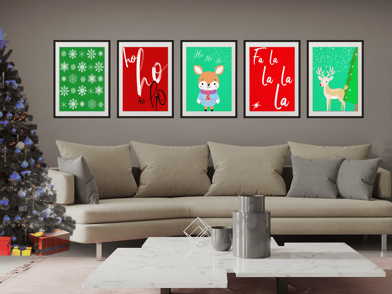 Get these for this Christmas, and beat the rush! A trendy colorful set of 10 Christmas wall art decorations. East to print, perfect for any festive wall to wow your guests and family, set the mood and tone of the festive season. Simply reuse them every year to make that brilliant festive mood every Christmas season when the decorations come out. There's nothing better than having a Christmas theme on your wall to create that seasonal tone. Your kids or grandkids will love it!