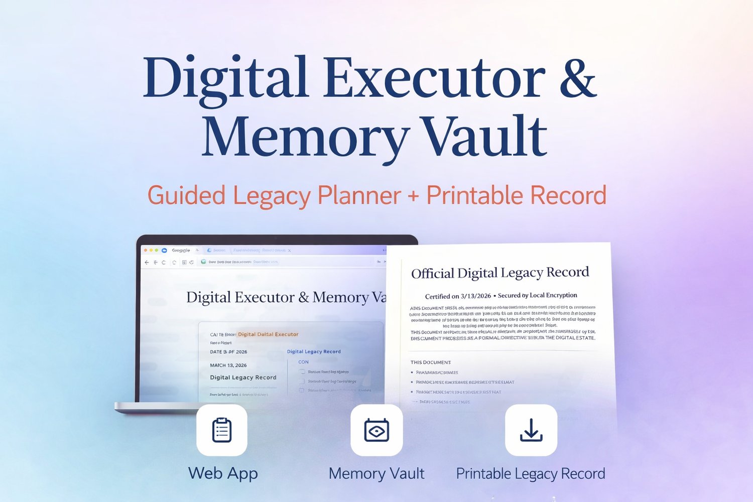 Digital Executor & Memory Vault Web App Guided Legacy Planner + Printable Record