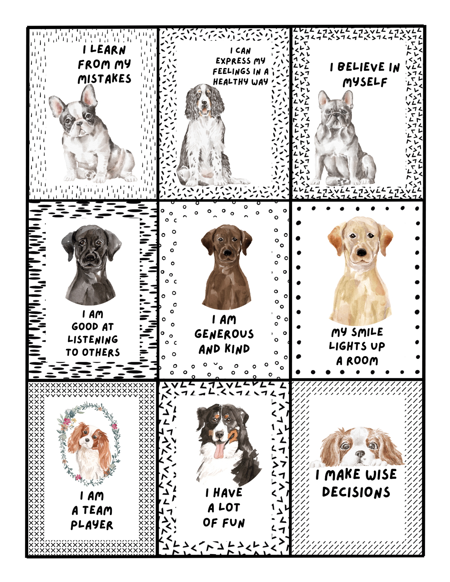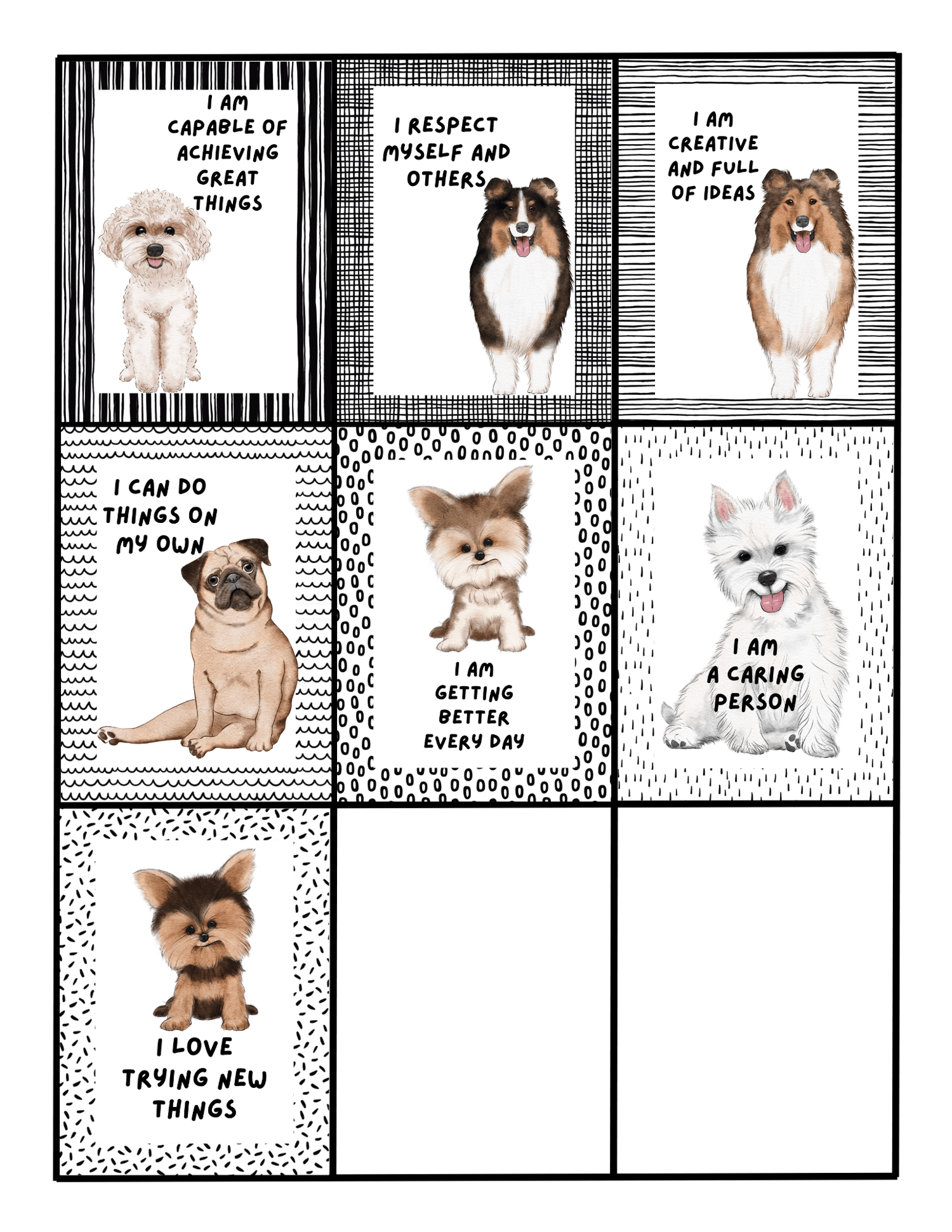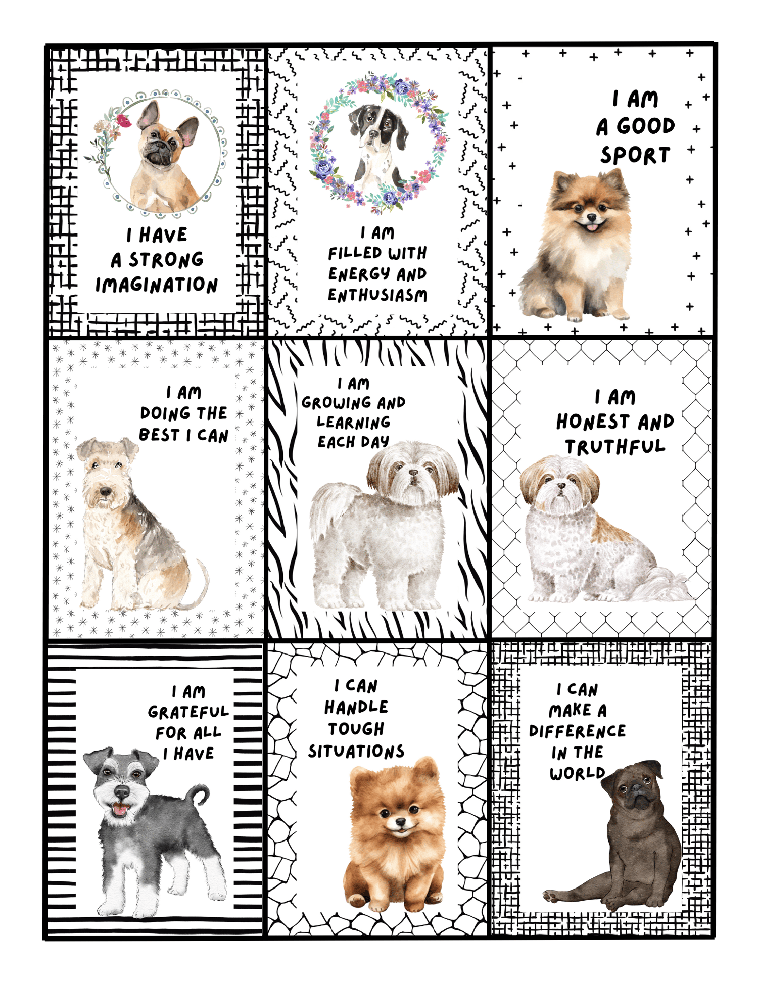 🌟 Empower Kids with Self-Esteem & Confidence Affirmation Cards! 🌈 Elevate young hearts and minds with our specially designed 50-pack of printable affirmation cards with cute dog and cat images and uplifting affirmations, perfect for kids aged 8-12. Each pack, centered on "Self-Esteem & Confidence," includes 50 unique cards to nurture positive self-perception and confidence-building.