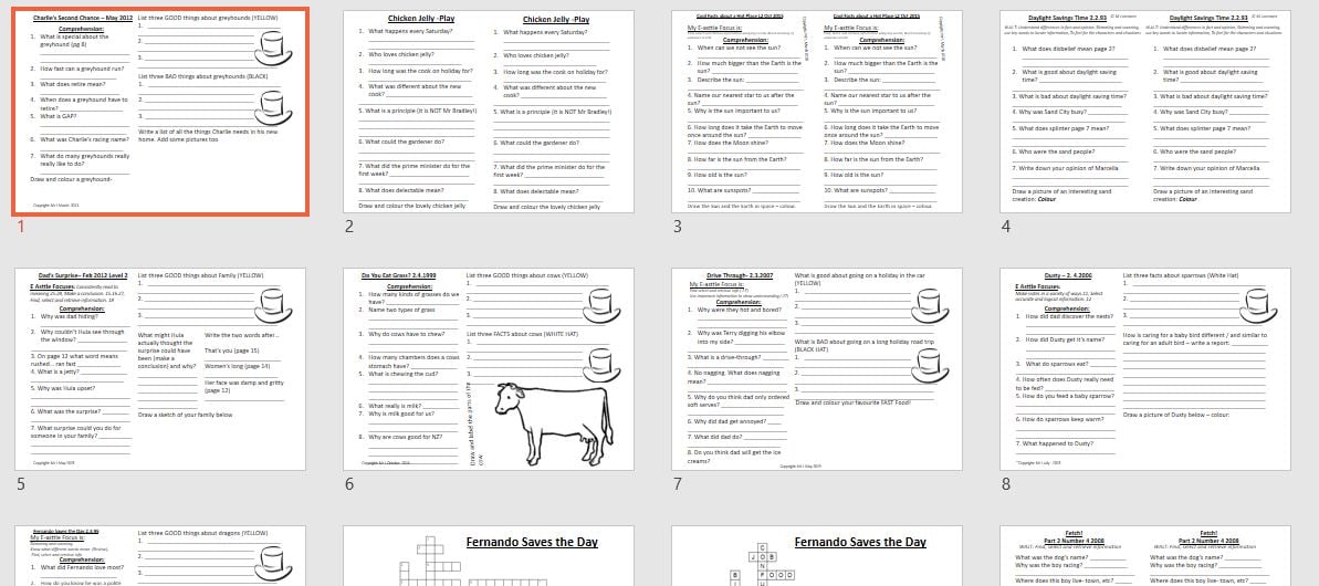 12 titles response sheets for NZ Part 2 school journals - editable