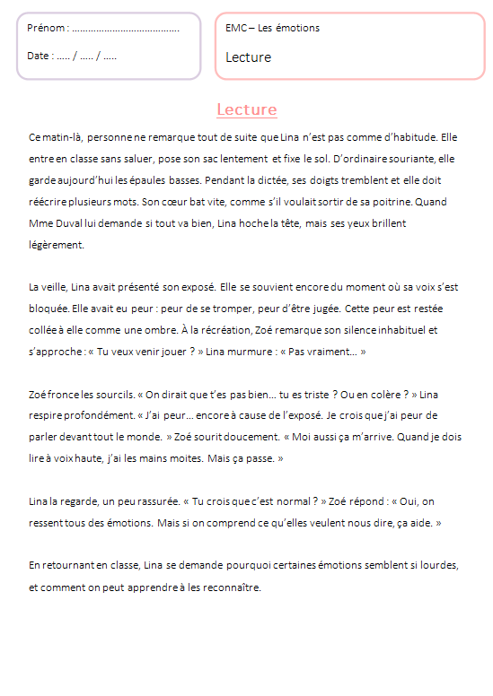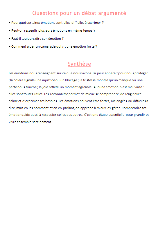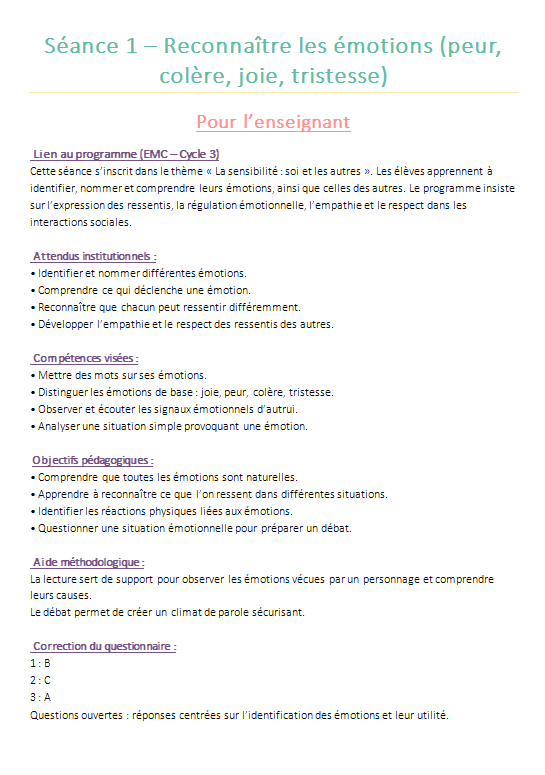 đ Objectif de la sĂ©quence : reconnaĂźtre, exprimer et gĂ©rer les Ă©motions au Cycle 3