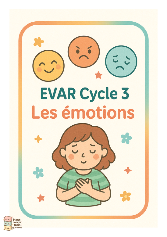 Cette sĂ©quence complĂšte de 5 sĂ©ances EVAR pour le Cycle 3 aide vos Ă©lĂšves Ă mieux comprendre ce quâils ressentent, Ă mettre des mots sur leurs Ă©motions, et Ă dĂ©couvrir des stratĂ©gies concrĂštes pour retrouver le calme et mieux vivre avec les autres.