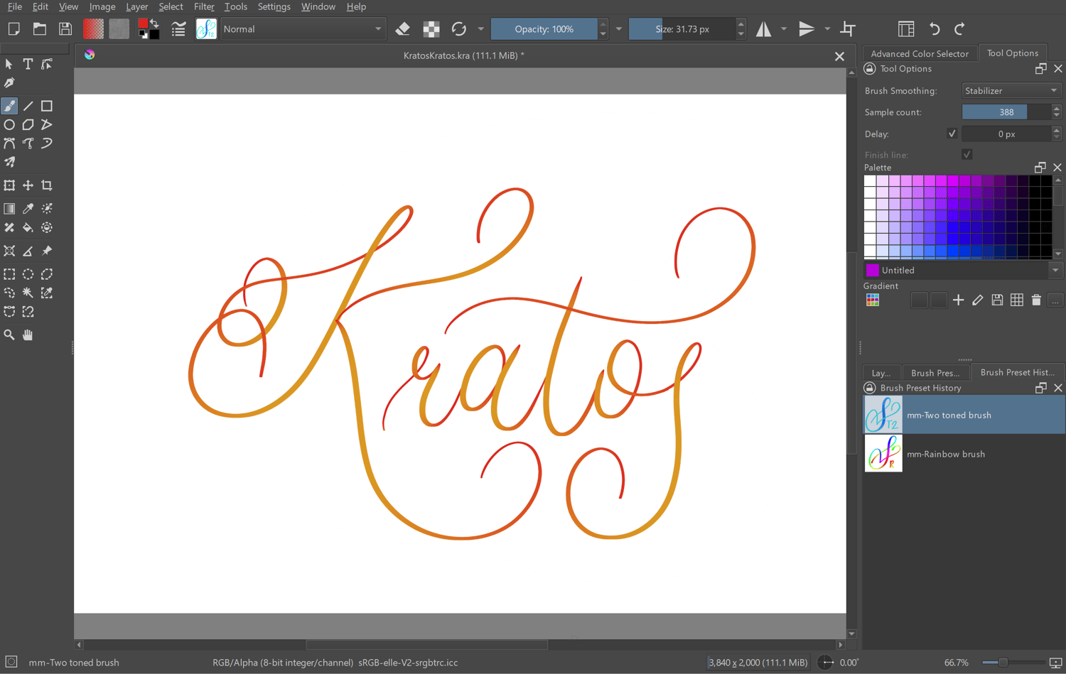 -Complimentary to my custom calligraphy brushes on Krita video