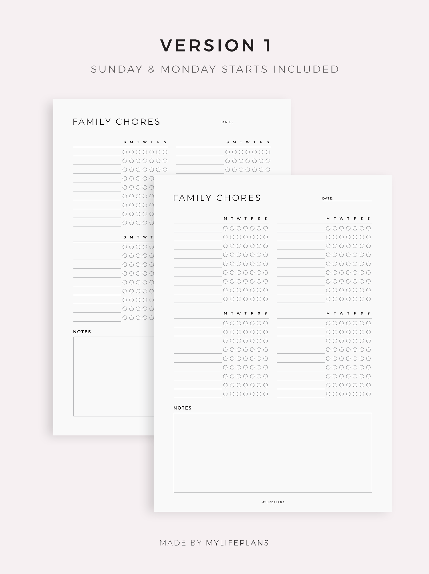 Weekly Family Chores Planner, House Responsibilities 4- 6 People, Compatible with e-Ink devices