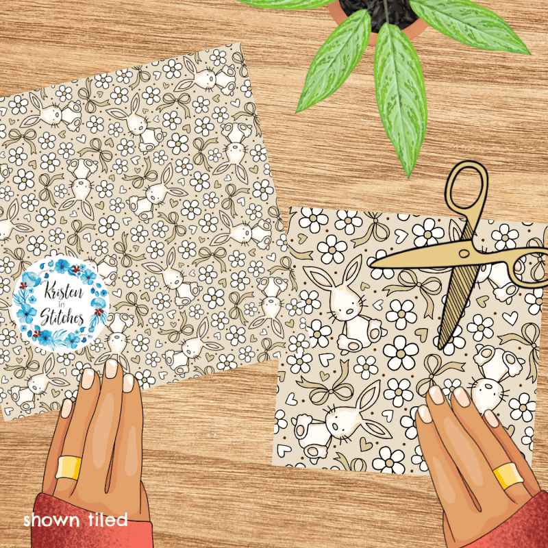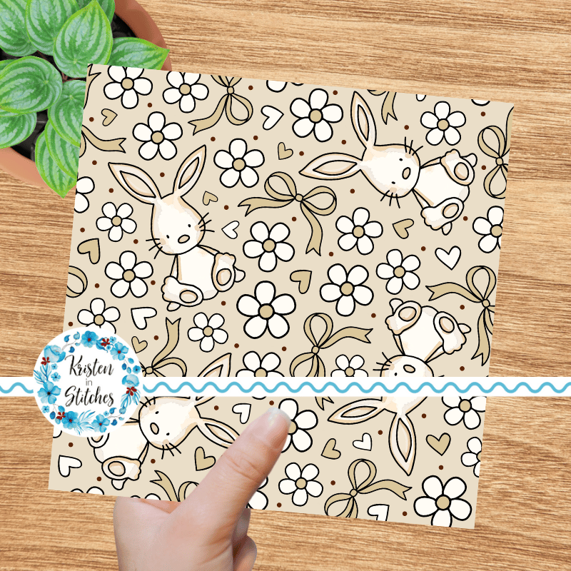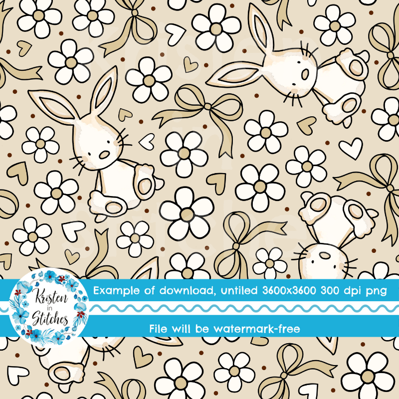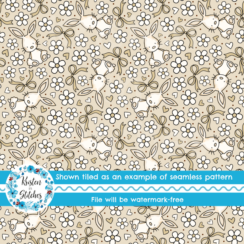 Spring Bunnies and Bows Seamless Pattern, Easter Bunny Rabbit in Tan
