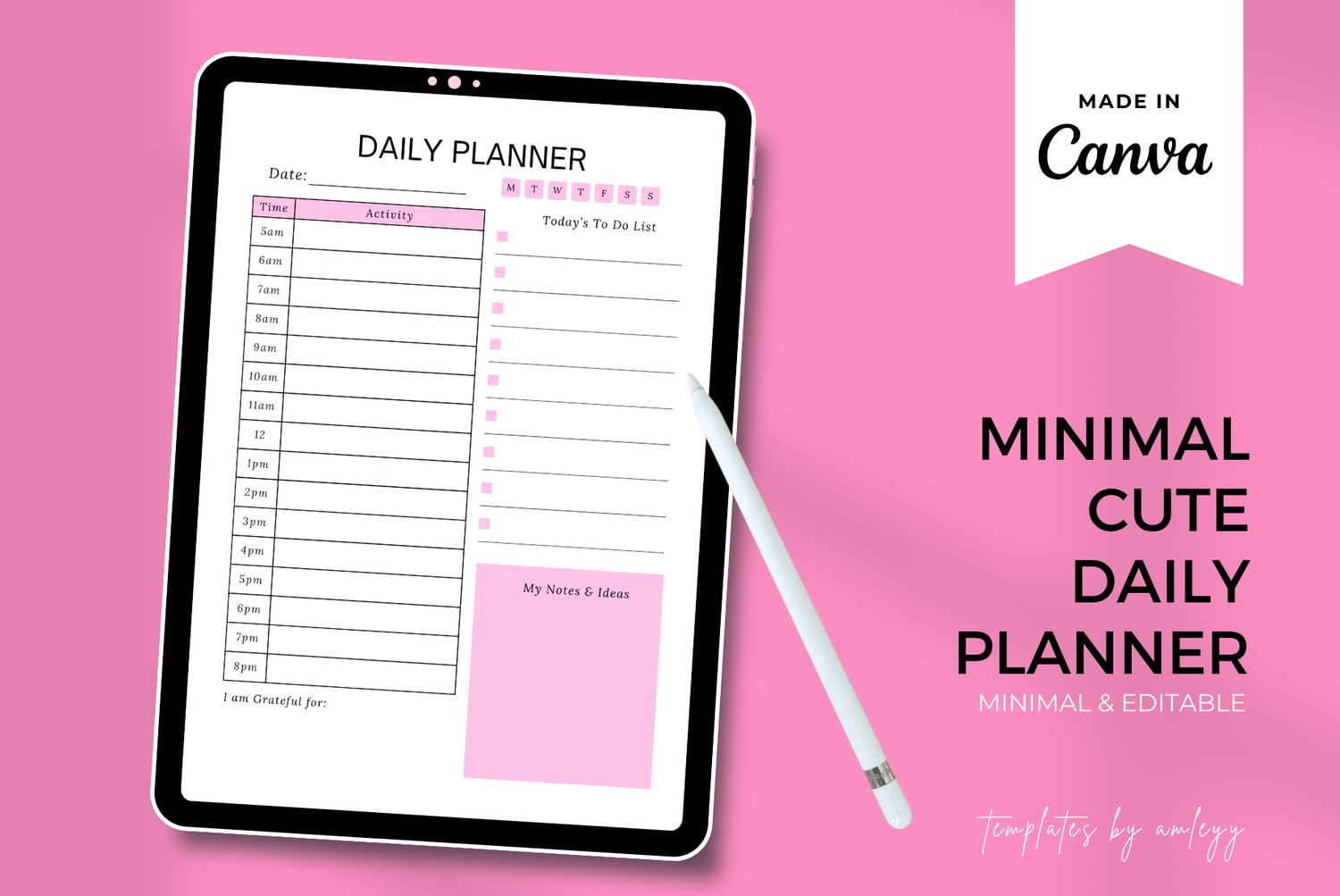 Minimal Cute Daily Planner Template Canva | Simple Aesthetic Daily Planner | Printable & Digital Planner | Perfect for Students & Busy Days