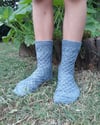 Les chaussettes Ricochets comportent un panneau de mailles glissées qui s’entrecroisent et s’entrelacent comme des ronds dans l’eau. Ce motif est beaucoup plus simple à réaliser qu’il n’y parait.