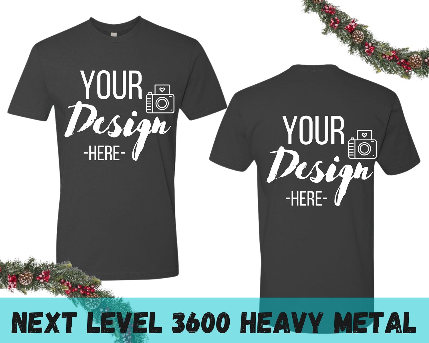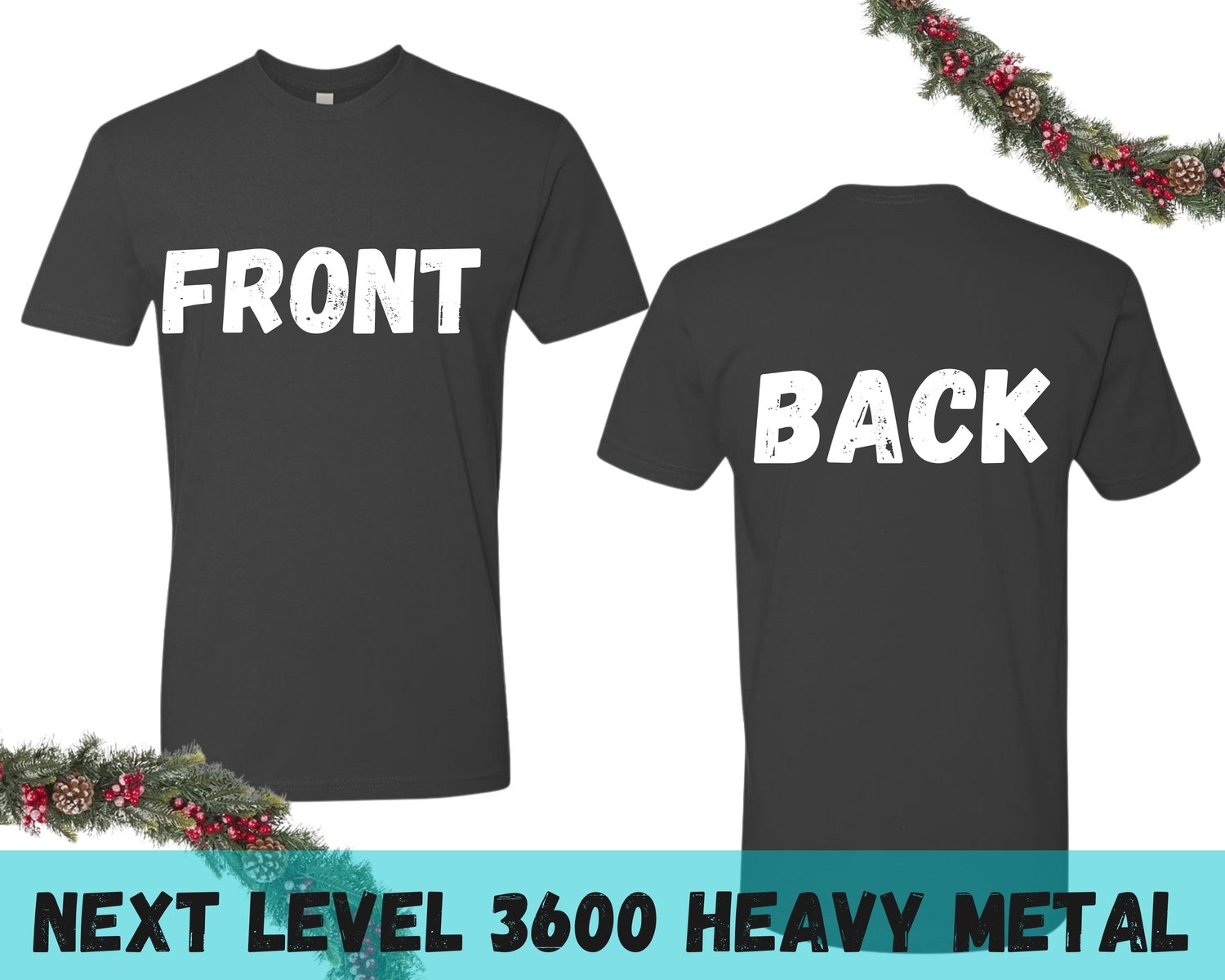 Front and Back Next Level 3600 Heavy Metal Tshirt Mockup, Heavy Metal NL3600 T-shirt Mock Up, Digital Mockup, Instant Download Christmas Illustration