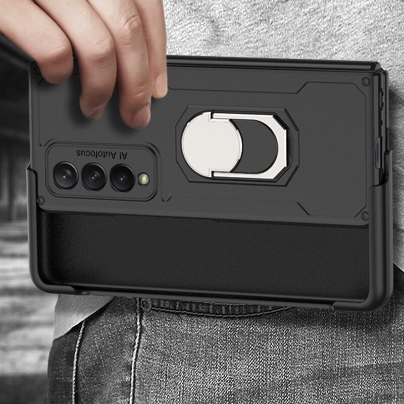 Best 2021 Samsung Galaxy z Fold 3 Cover Case hard PC Ring Holder With Carring Belt