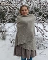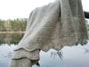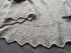 The shawl has a semicircle shape, starting from the middle of the longest side and increasing in rapidly. The construction follows loosely half-pi shawl construction. It has a body of broken rib, comfortably simple for easy knitting and Old Shale insertion, as well as a border, slightly adapted for symmetry. The increases are built in a way to support broken rib pattern.
