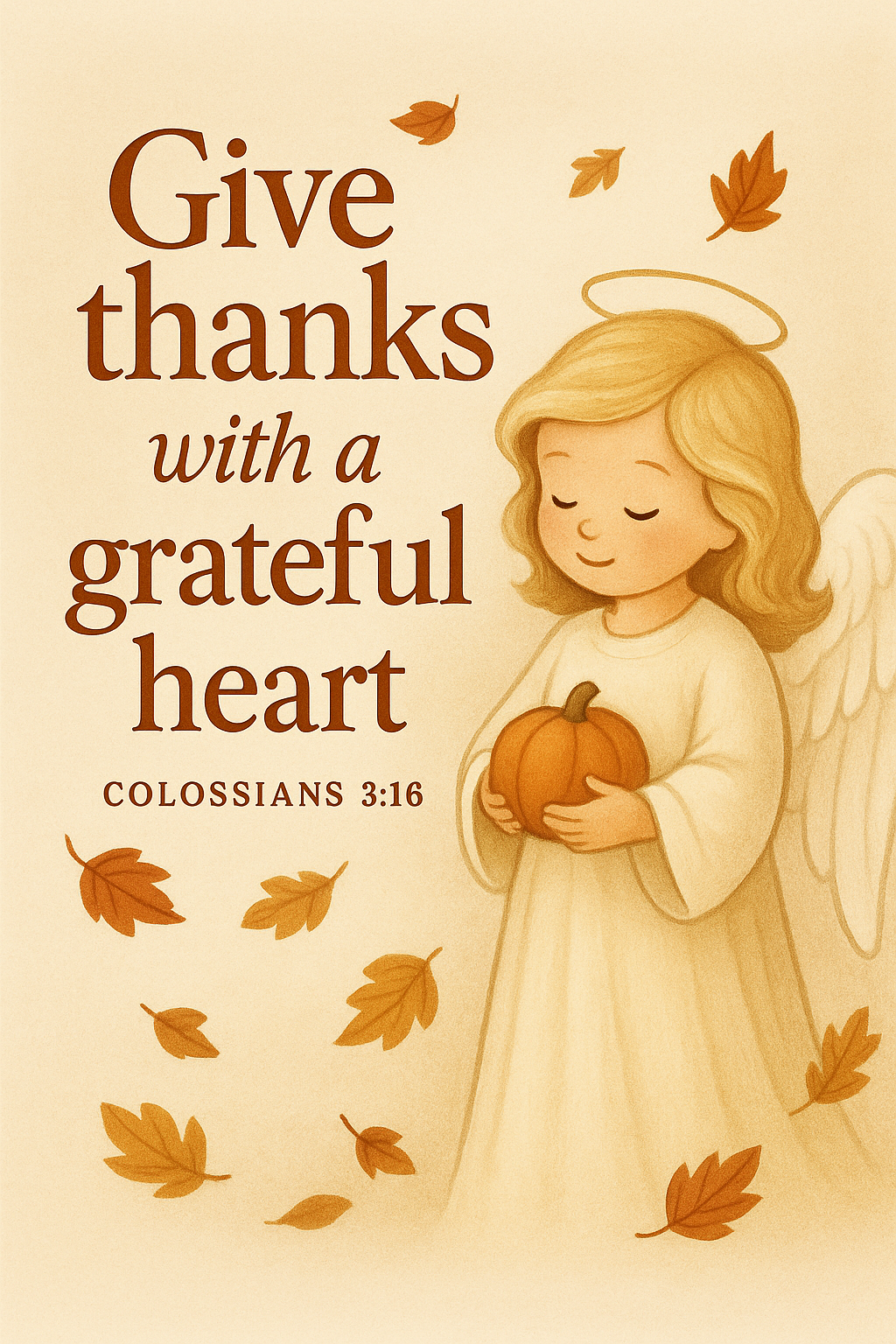 Let this angel remind every child: gratitude is a gift, and every season is a chance to give thanks with joy.