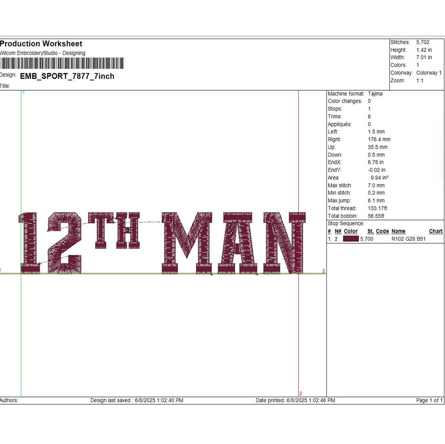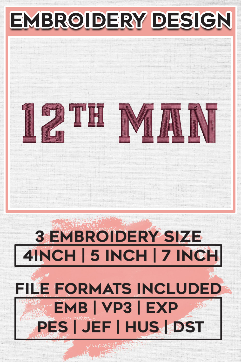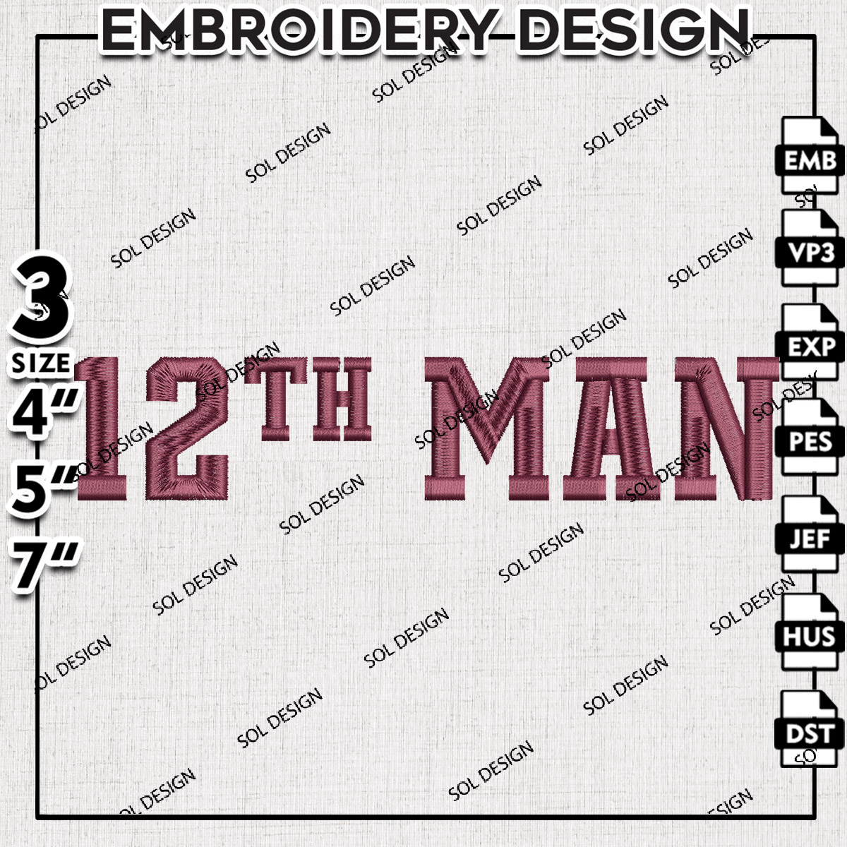 NCAA 12th Man Football Team Logo Embroidery Designs, NCAA Texas AM Aggies Machine Embroidery Files, NCAA Logo embroidery designs, NCAA Texas AM Logo, Digital Download
