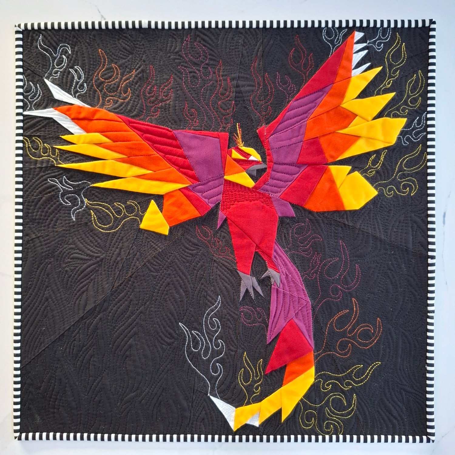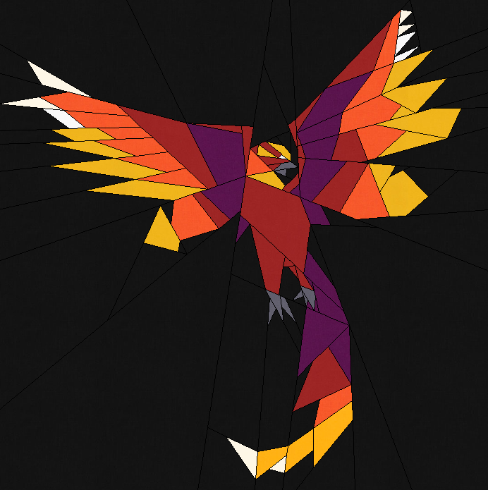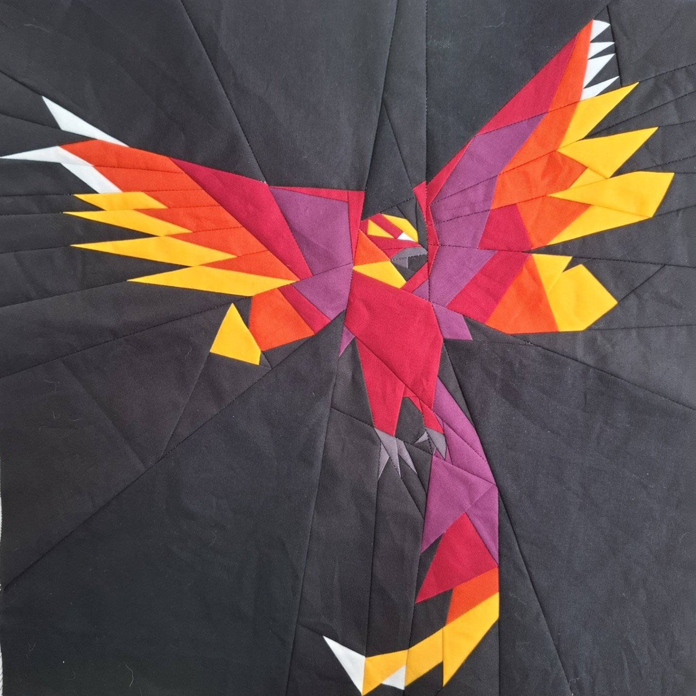 I originally designed this in 2021 as part of the Festival of Quilts’ ‘Exhibition of Hope’. We all know what happened in 2020, and the phoenix rises from the ashes of what was there previously. It still feels very relevant now five years later. With a few revisions from the original (smaller) pattern I have released it for everyone to have their own Phoenix of Hope! The finished block measures approx. 15x15”. There are no instructions included on how to actually do FPP, but there are several keys and a colouring page included. It has a lot of pieces but is all still straight line sewing so if you’re organised you will be fine. Please reach out via Instagram, Etsy or email (GriffinAndTheBearStudio@gmail.com) if you require any additional help and please share your pics with me, I love to see! @GriffinAndTheBearStudio
