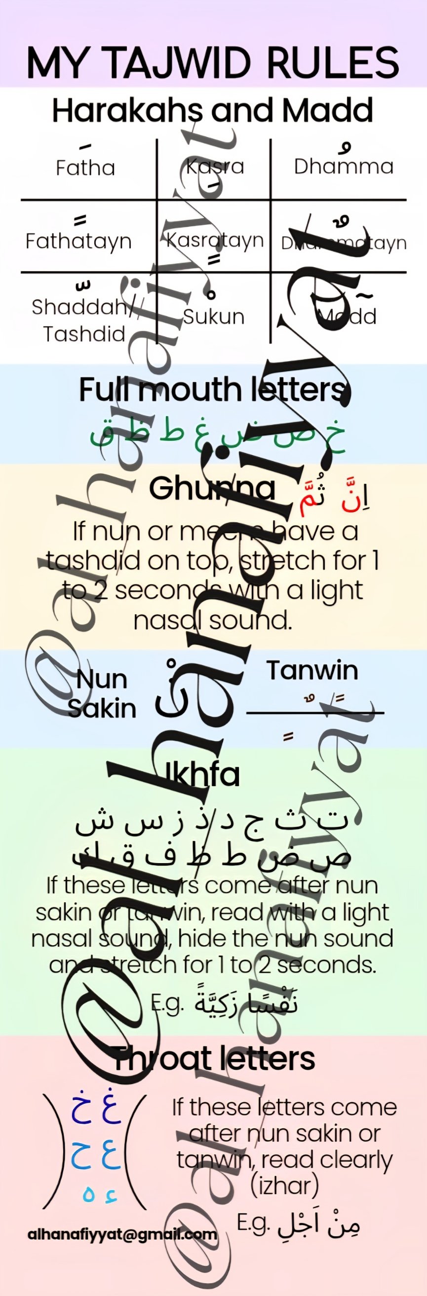 Learn/ revise the rules of tajwid using this handy bookmark!