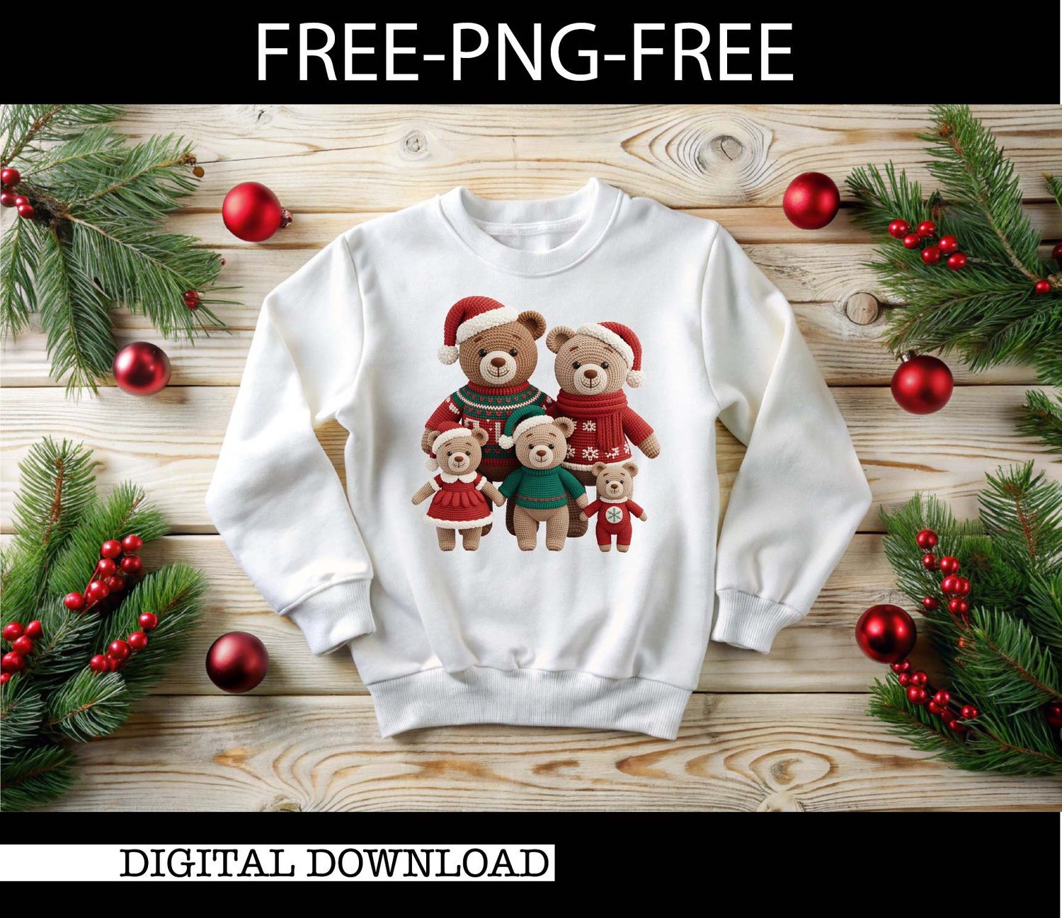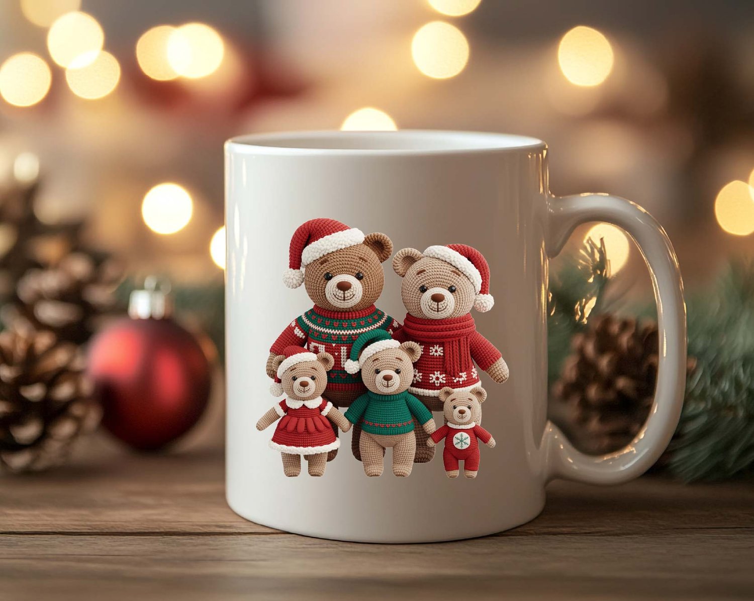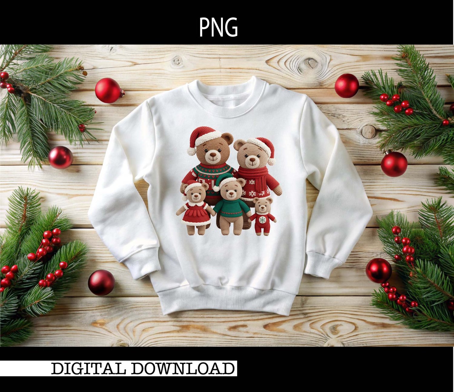 ✨ Faux Crochet Christmas Bear Family PNG Bundle | Papa, Mama, Boy, Girl & Baby Bear | Standing Christmas Bears | Transparent Background | Cute Holiday Clipart