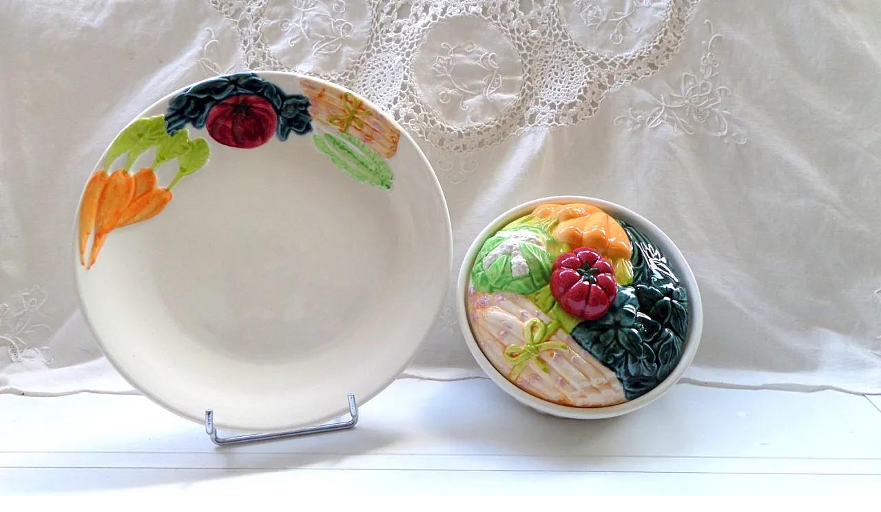 Michel Caugant Barbotine Vegetables Lidded Terrine and Plate