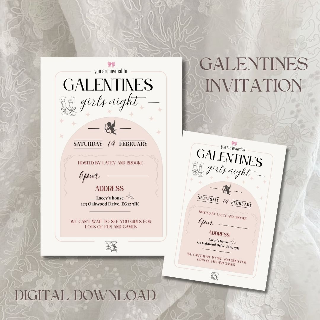 Celebrate love, laughter, and friendship this Galentine’s Day with our elegant and customisable digital invitation template!