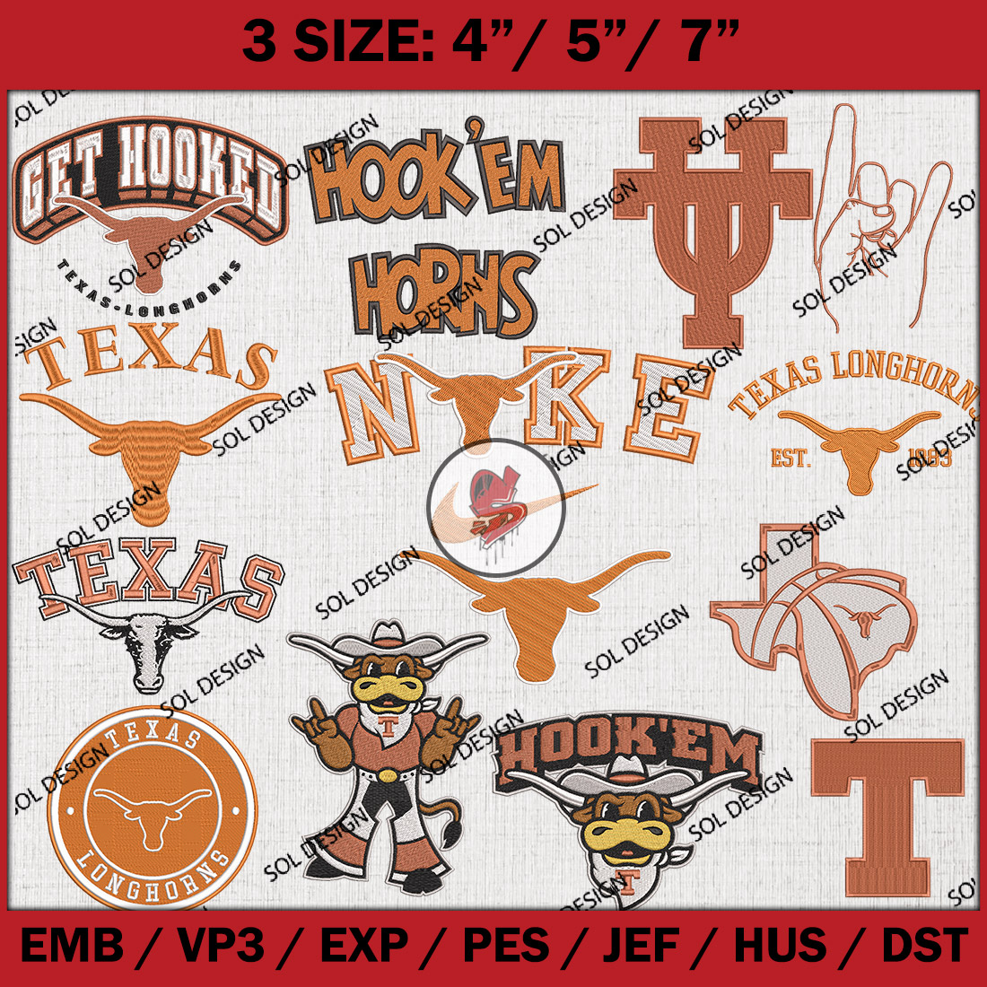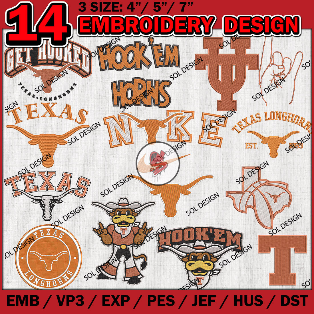 14 Texas Longhorns Embroidery Files, College Football Embroidery Designs, NCAA Texas Longhorns Machine embroidery Design Bundle, Ncaa Texas Logo bundle, Digital Download