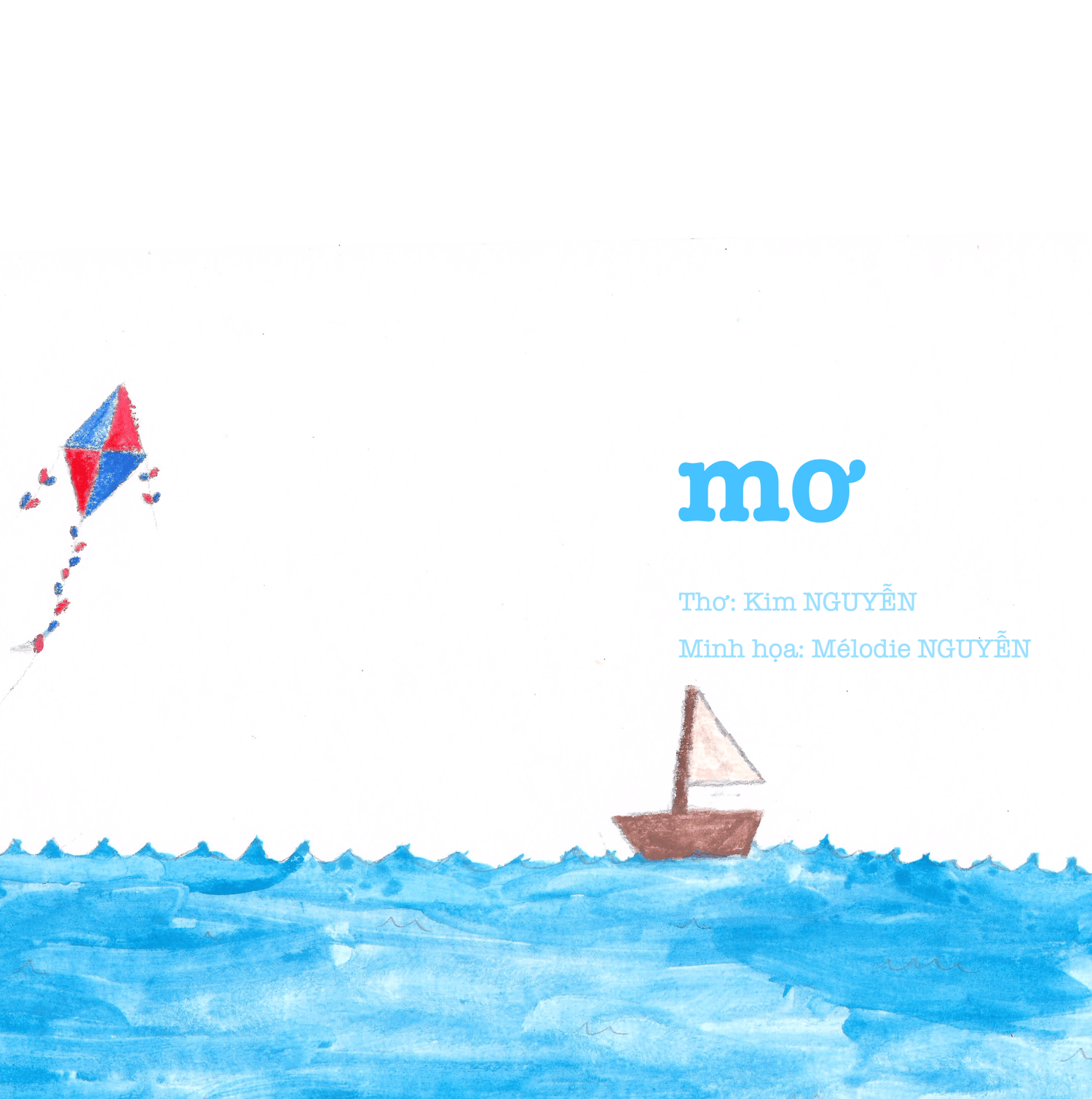 Tranh minh hoạ được vẽ bởi Mây - Mélodie Nguyen khi con vừa bi bô đánh vần vừa vẽ những nét ngây ngô.