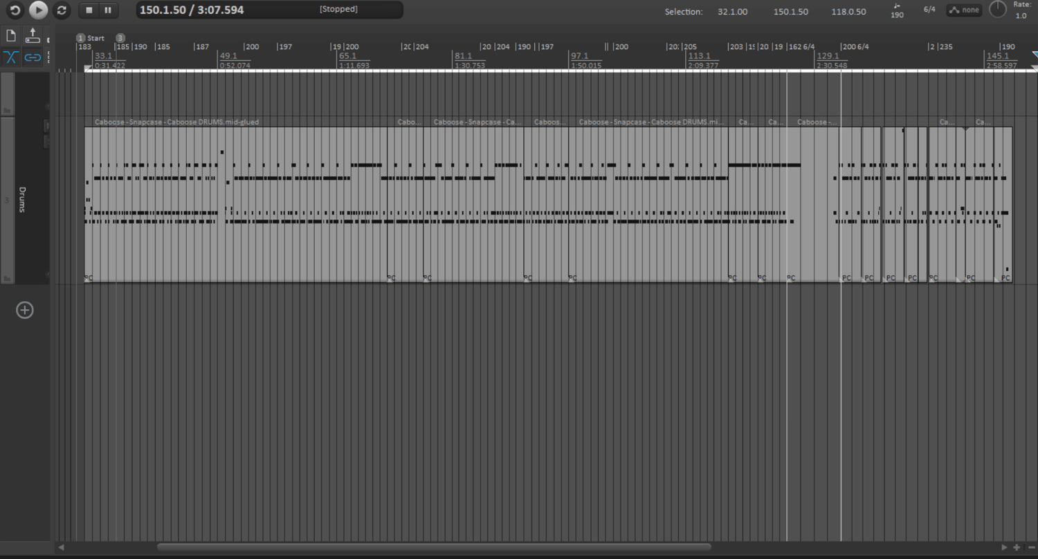 A faithful drum recreation inspired by Snapcase’s Caboose, programmed from scratch in MIDI for maximum flexibility.