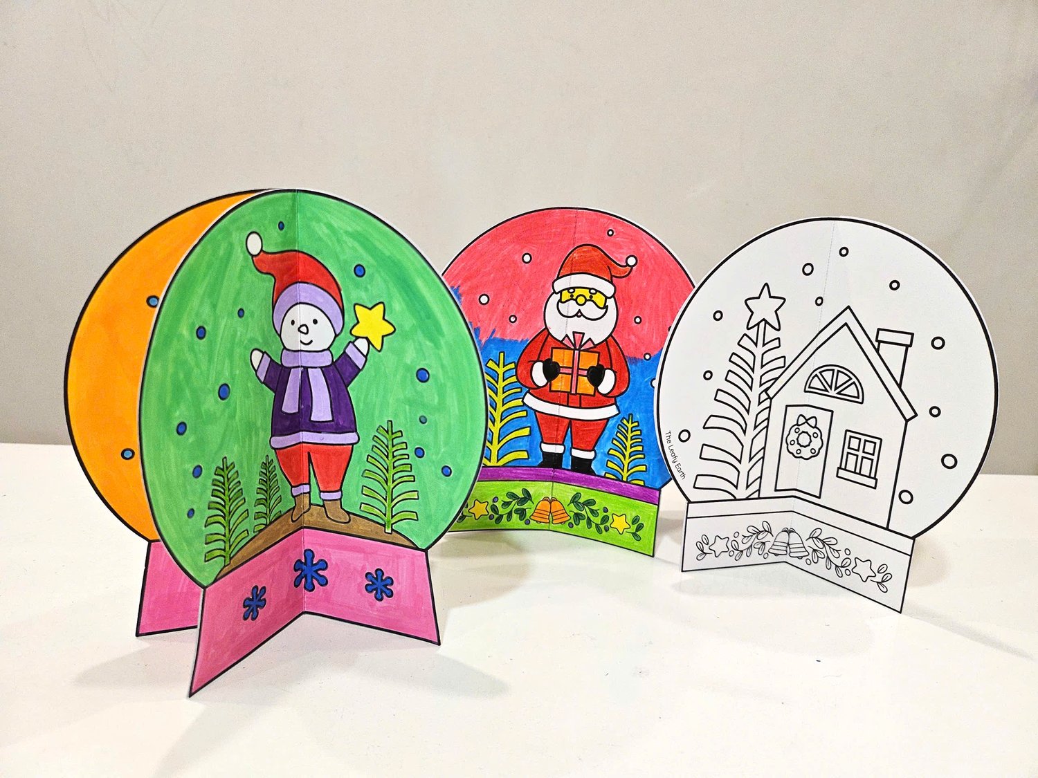 ✿ This printable includes two designs to make 3D paper snow globes, plus a blank template for kids to decorate their own.