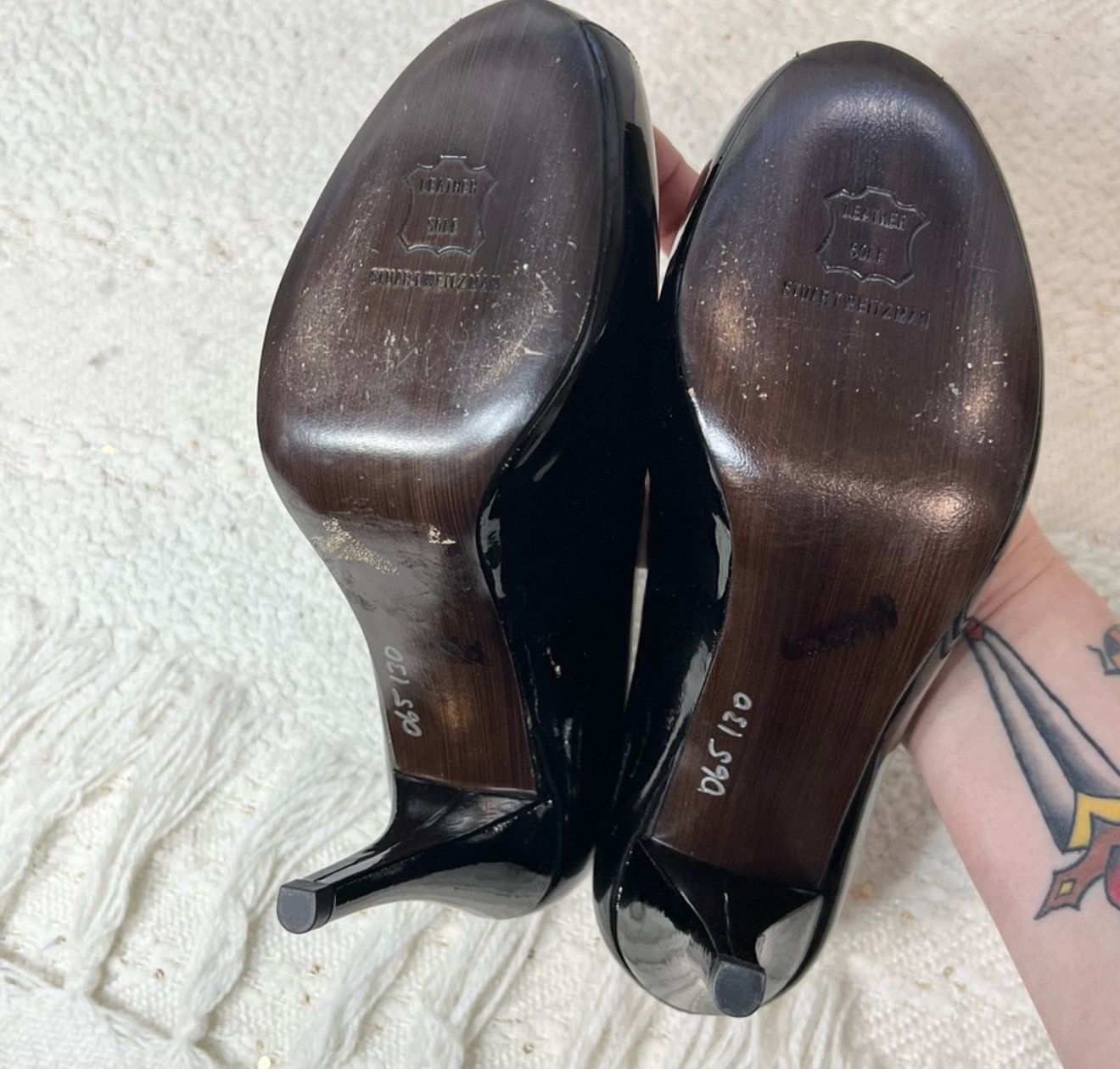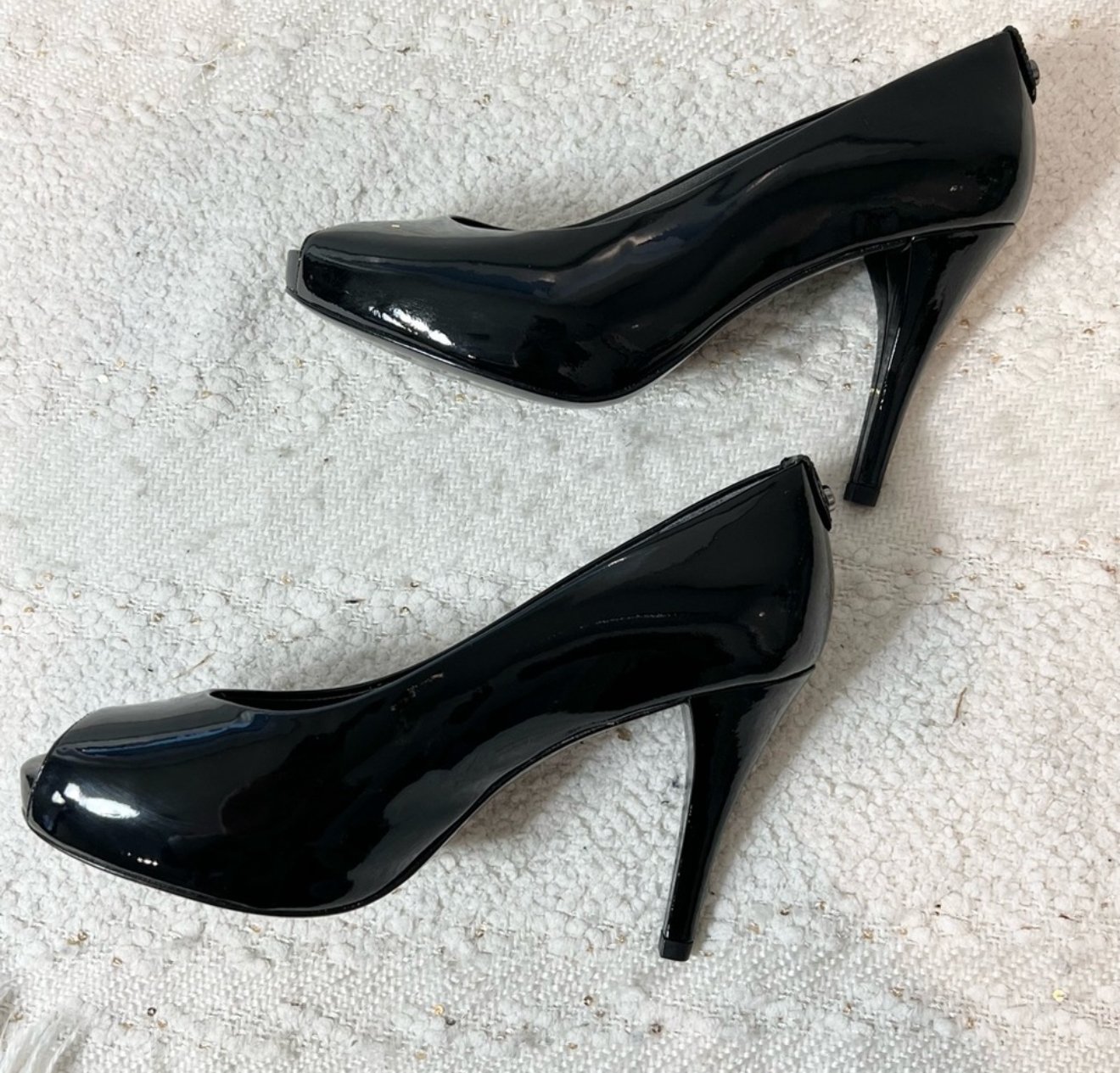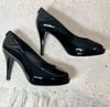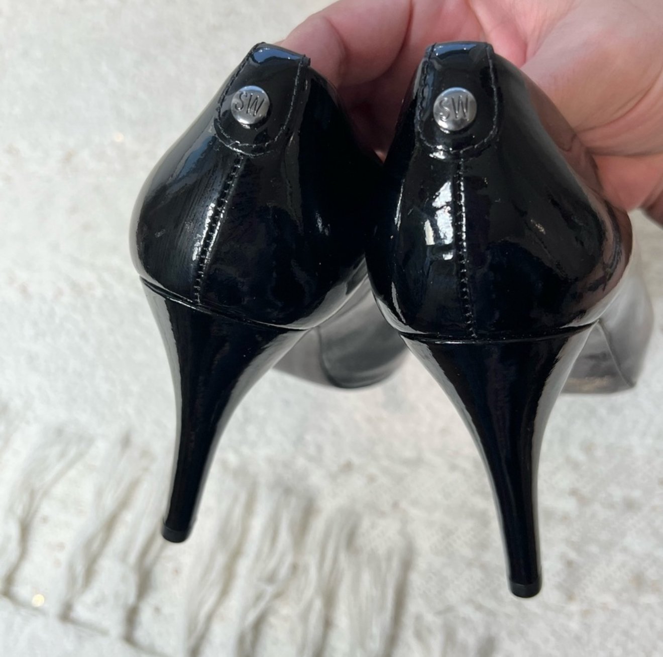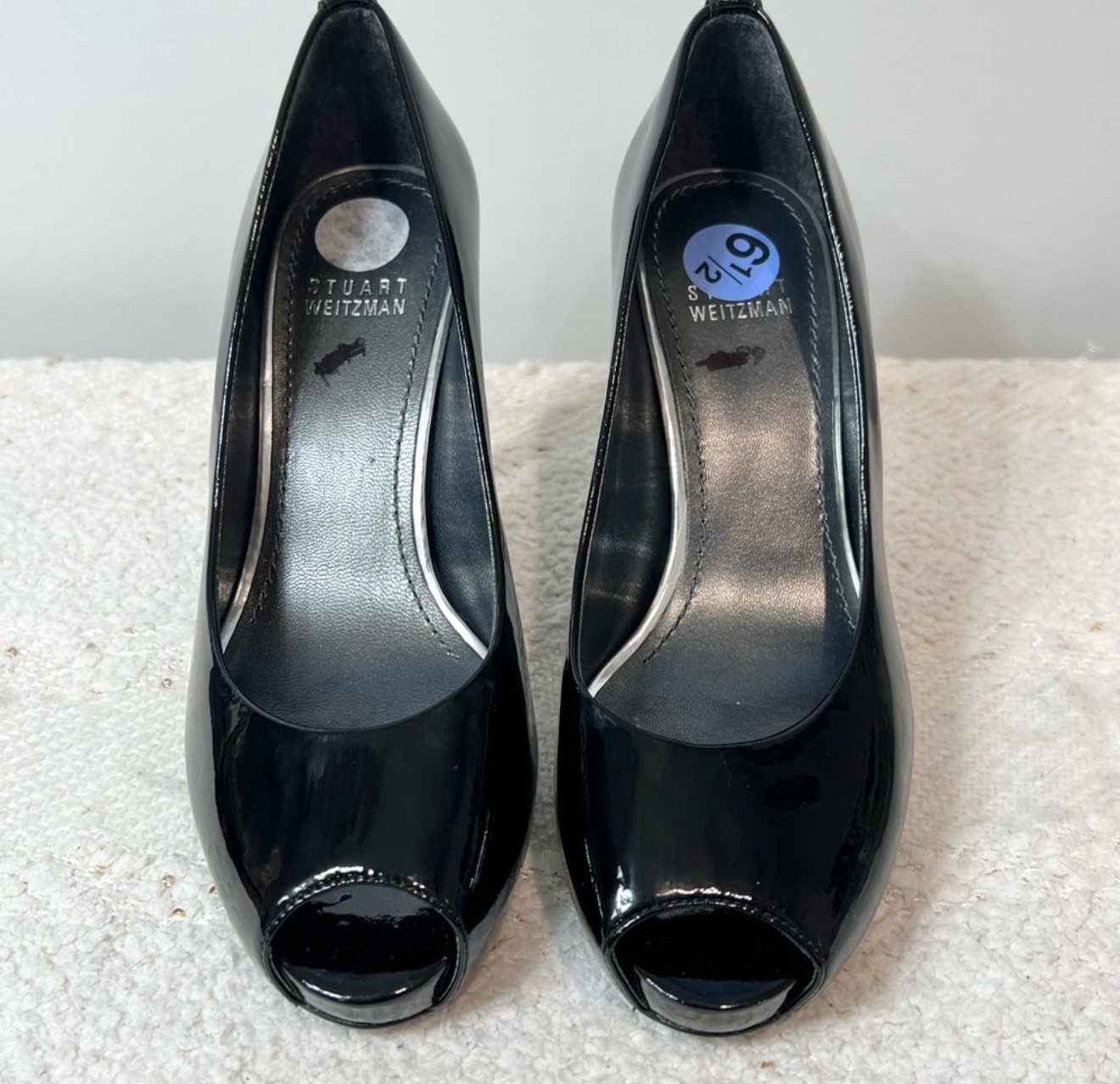 Stuart Weitzman black patent leather peep toe high heels - size 6 1/2