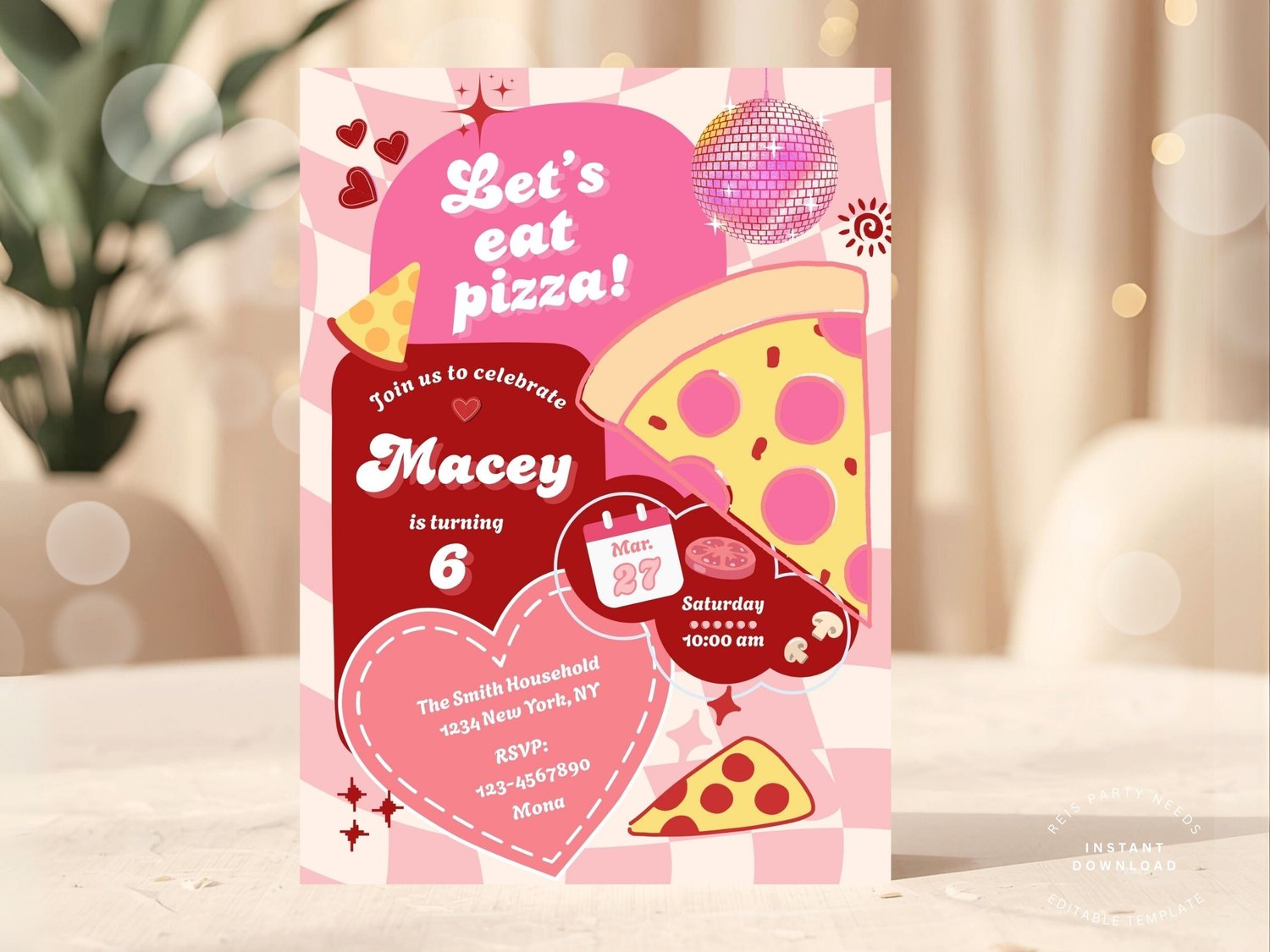 This Groovy Retro Pizza themed invitation is perfect for your occasion!