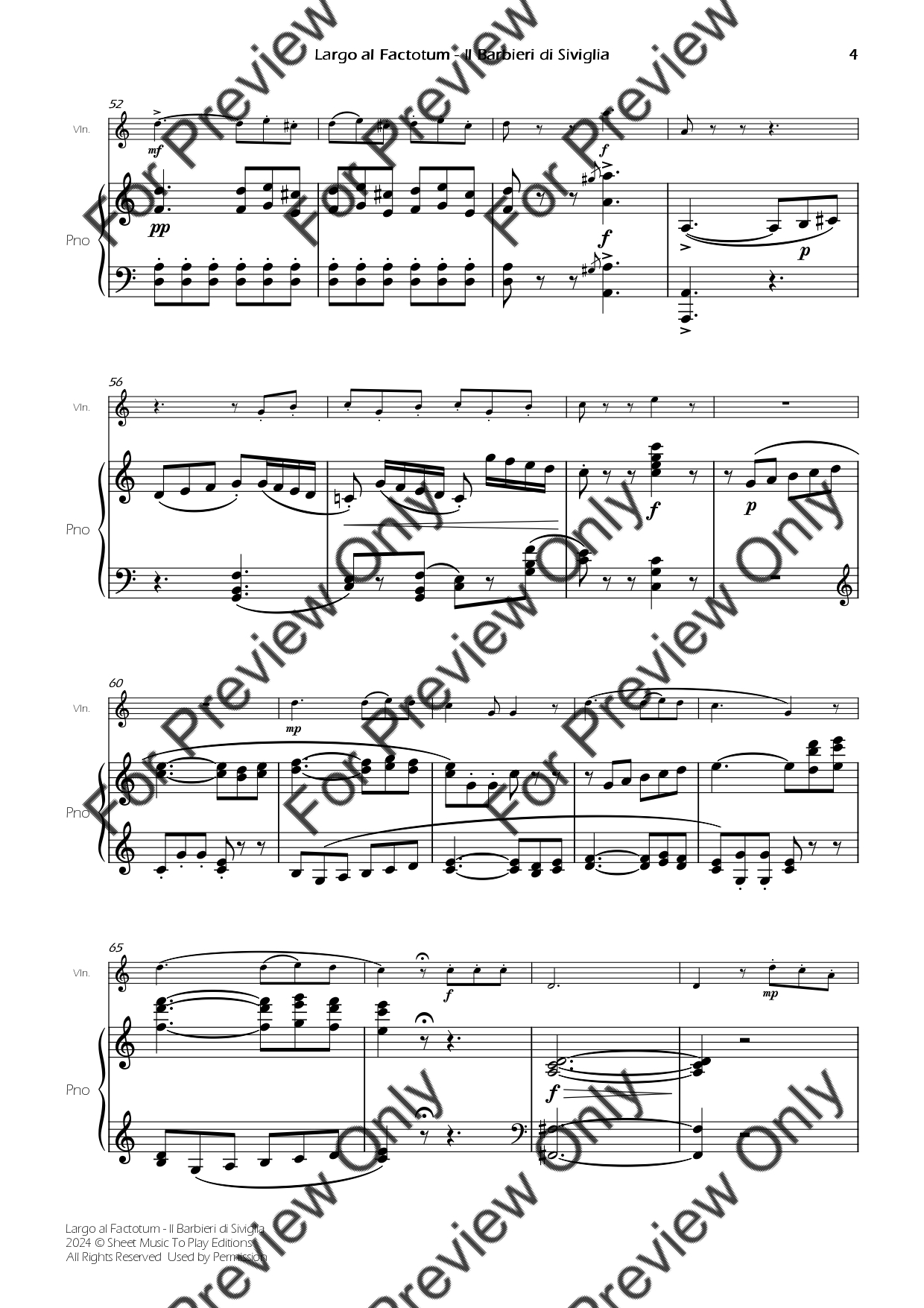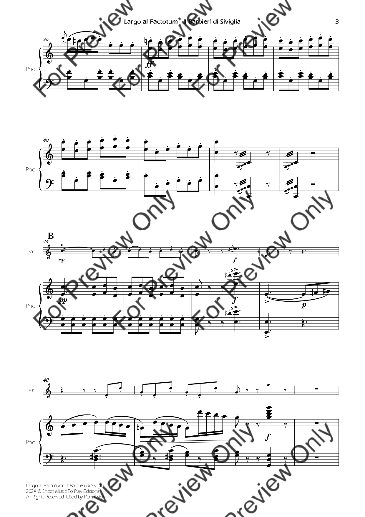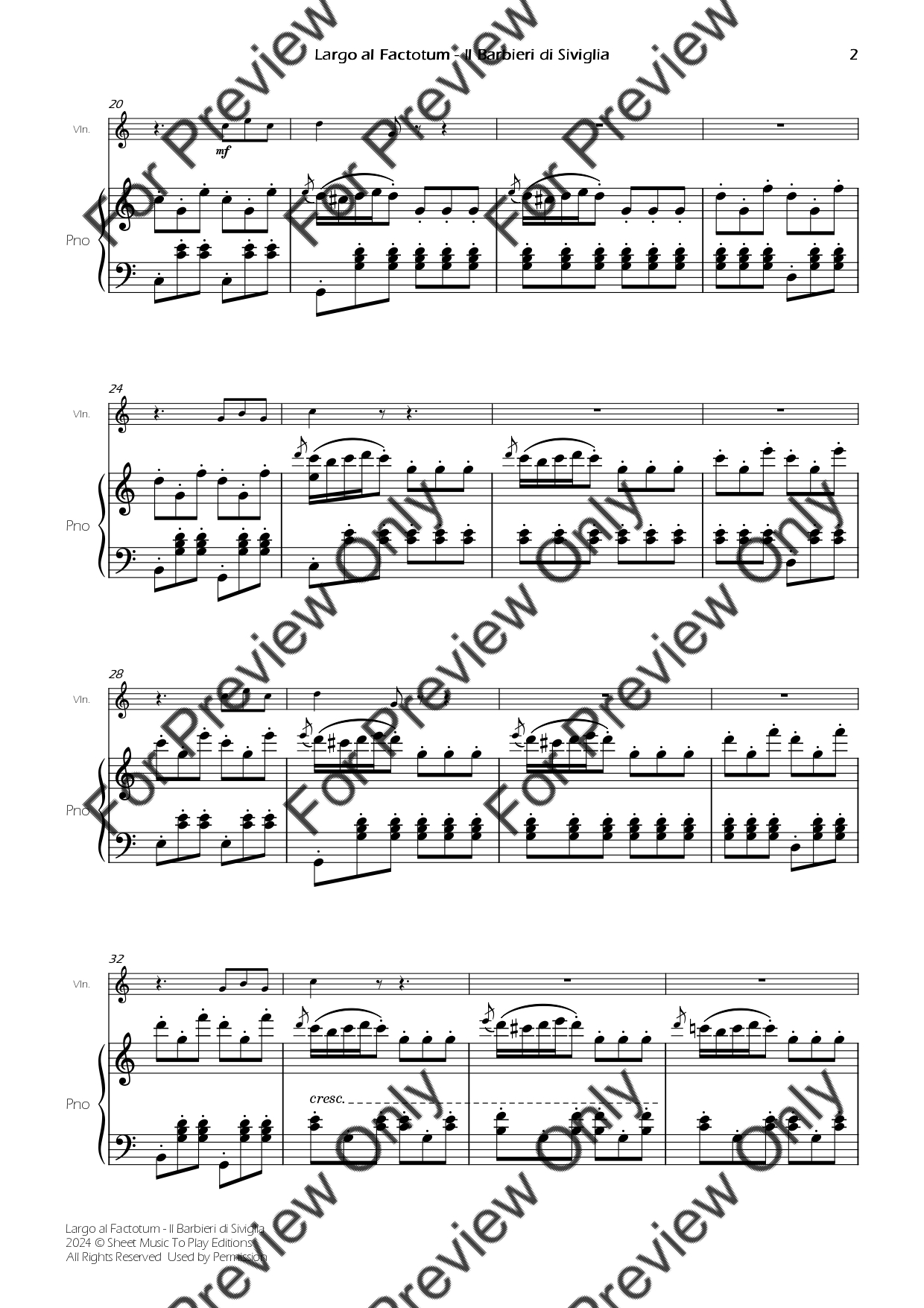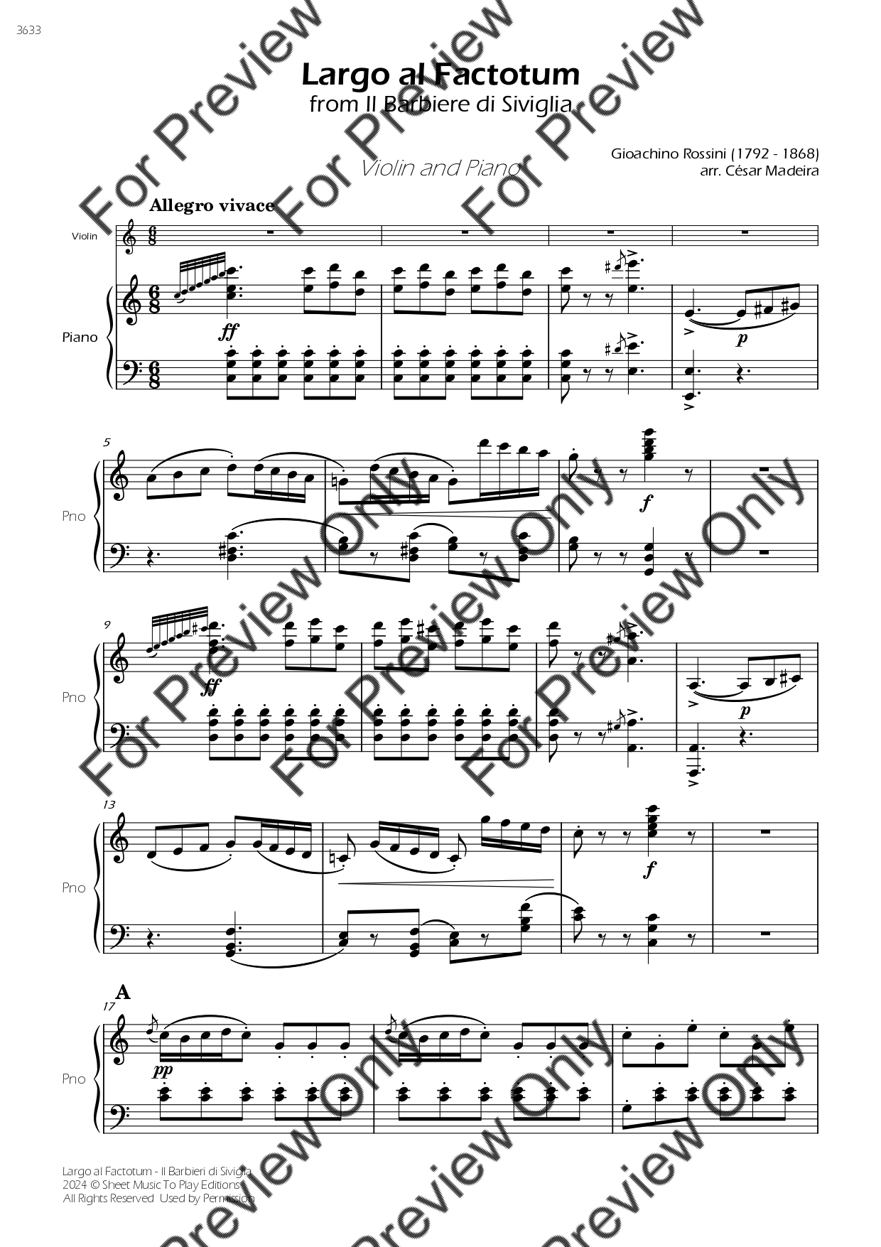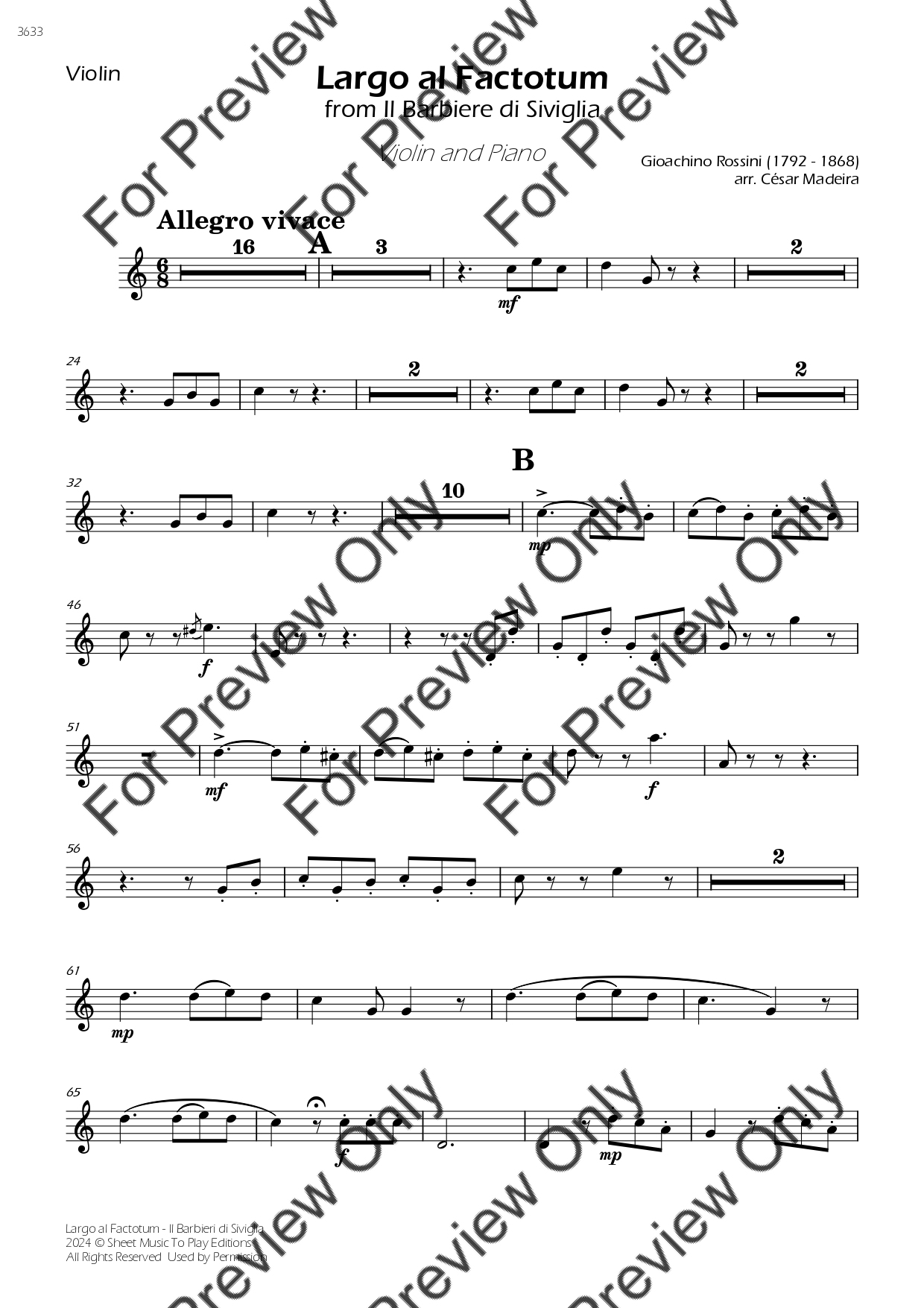 Largo Al Factotum from Il Barbiere di Siviglia by Gioachino Rossini. Arrangement for Violin and Piano. With Full Score and Individual Parts. Have fun!