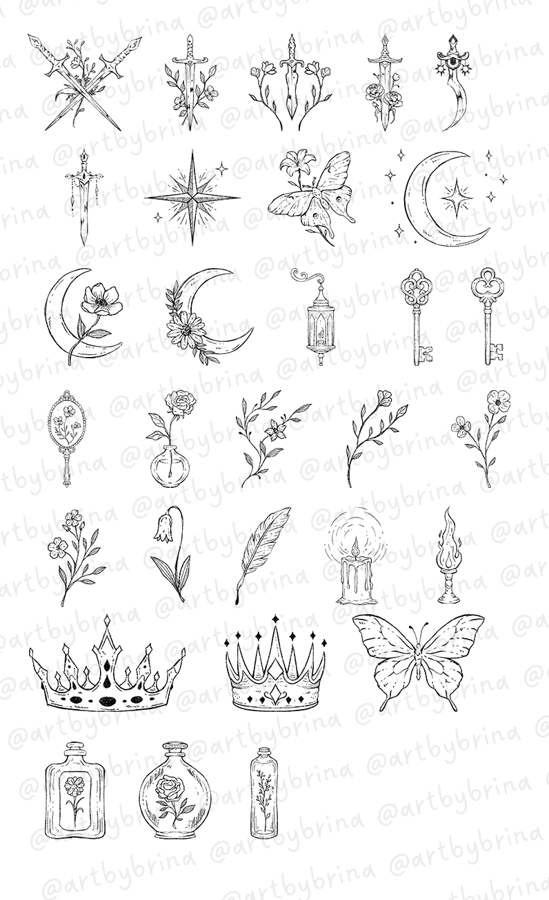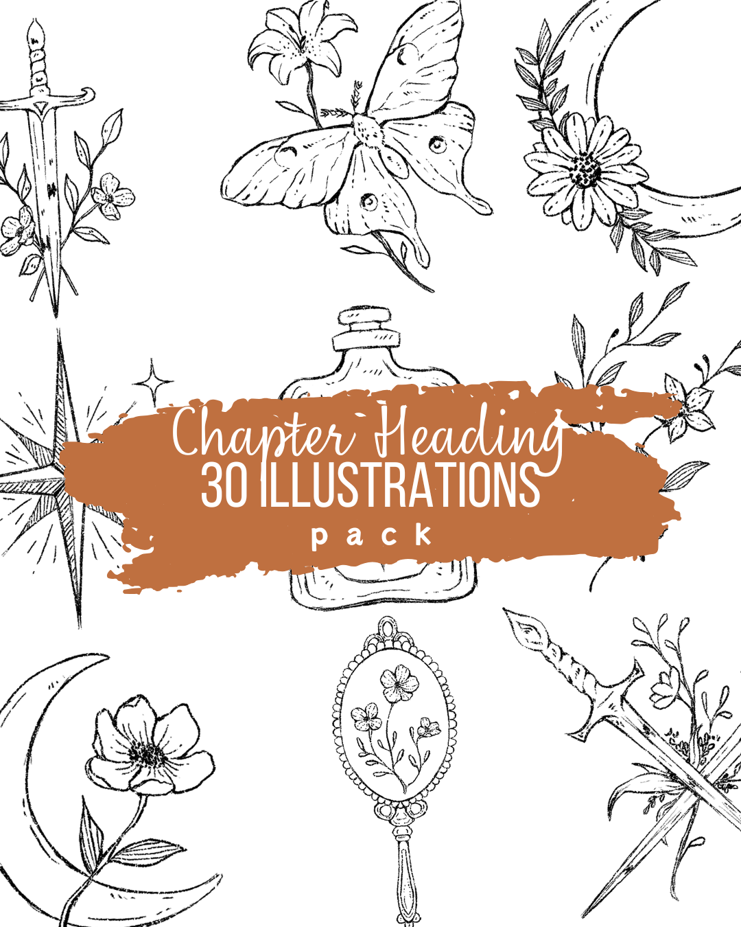 In this pack of 30 chapter headers you will find illustrations from swords to nature!