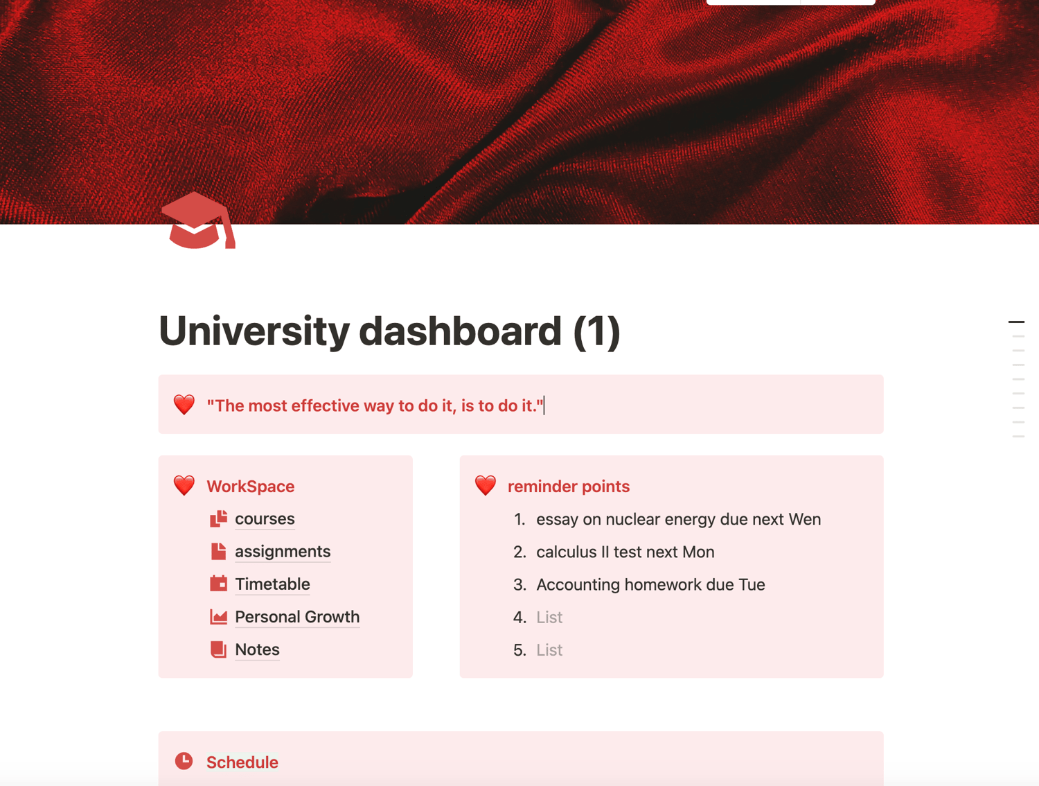 This isn't just another productivity template - it's a complete academic management system designed by students, for students. The carefully crafted red aesthetic creates an energizing yet calming environment that helps you stay focused and motivated throughout your studies.