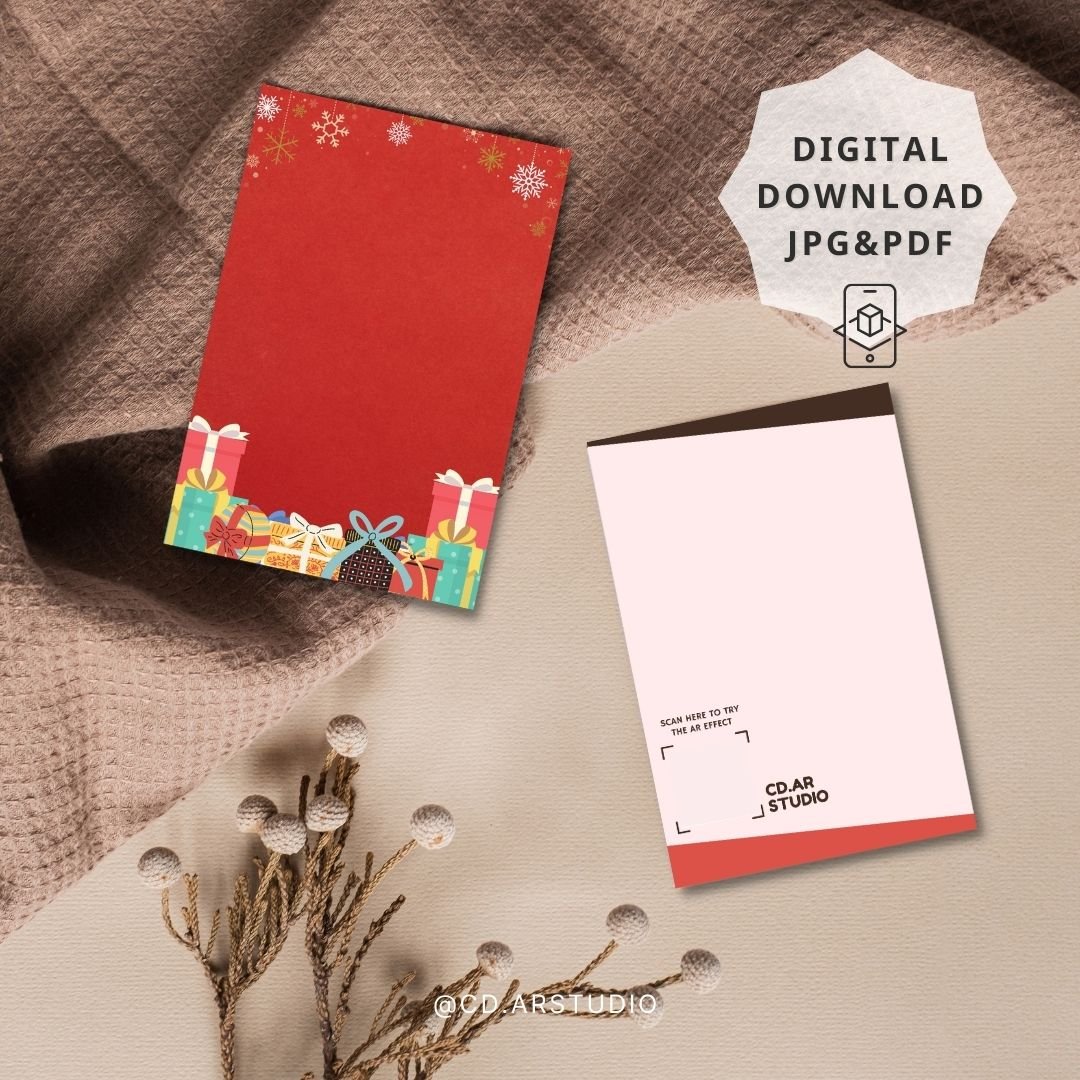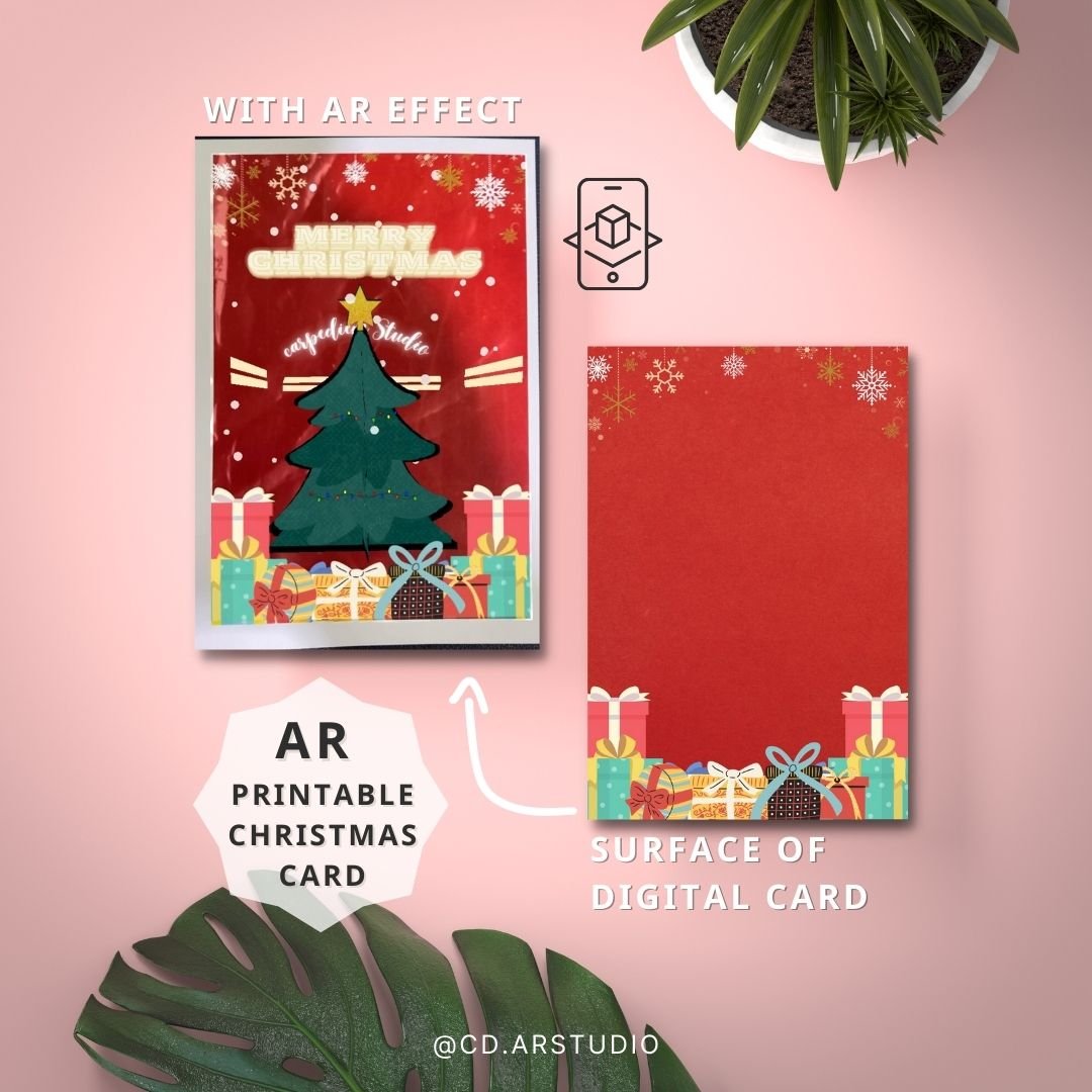 Christmas Box 3D tree AR Snow Effect Printable Christmas Card