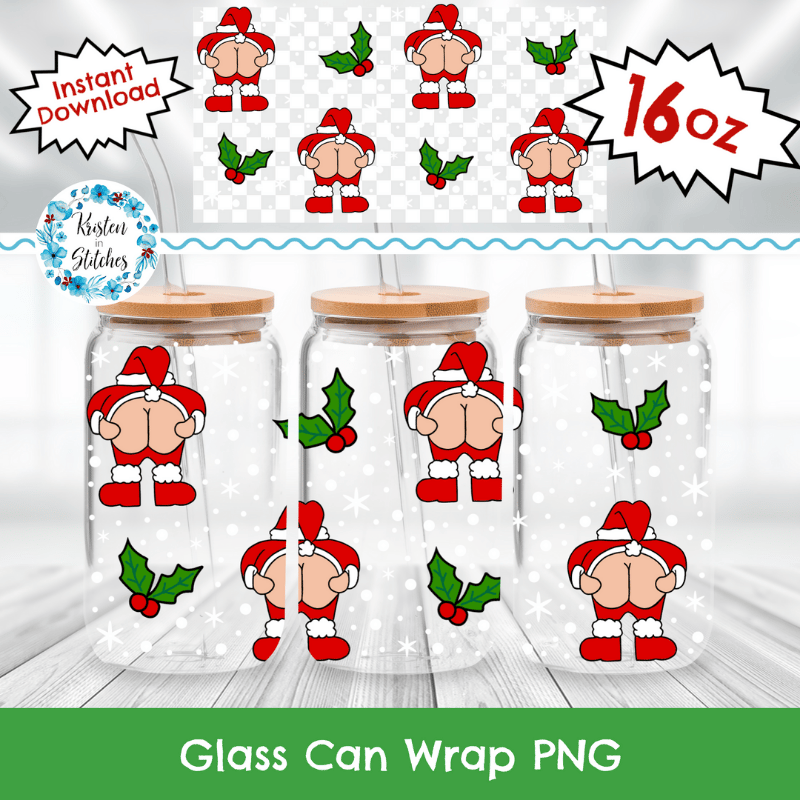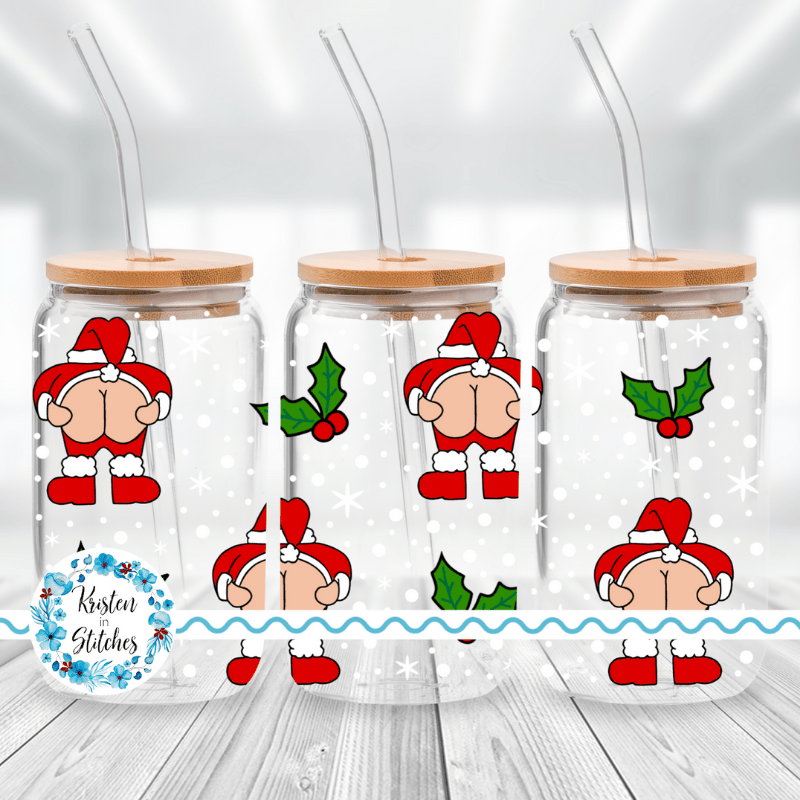 Cheeky Santa Sarcastic Christmas 16 oz Glass Can Wrap Transparent PNG