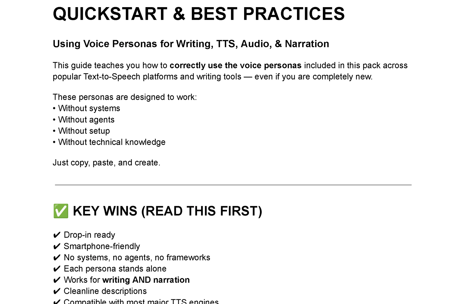 This is a clean, standalone variety pack of voice personas designed for creators who want professional narration without complexity.