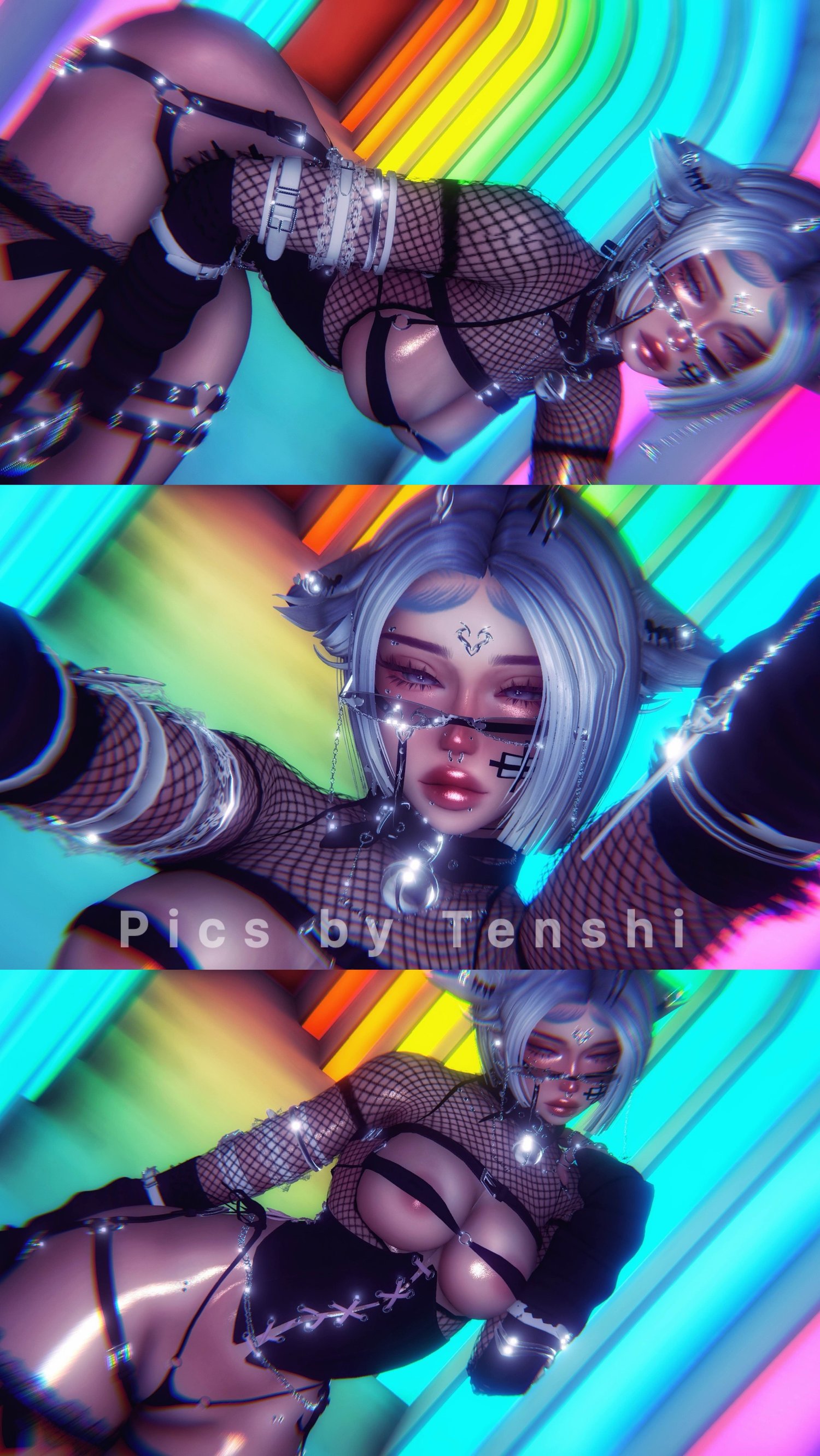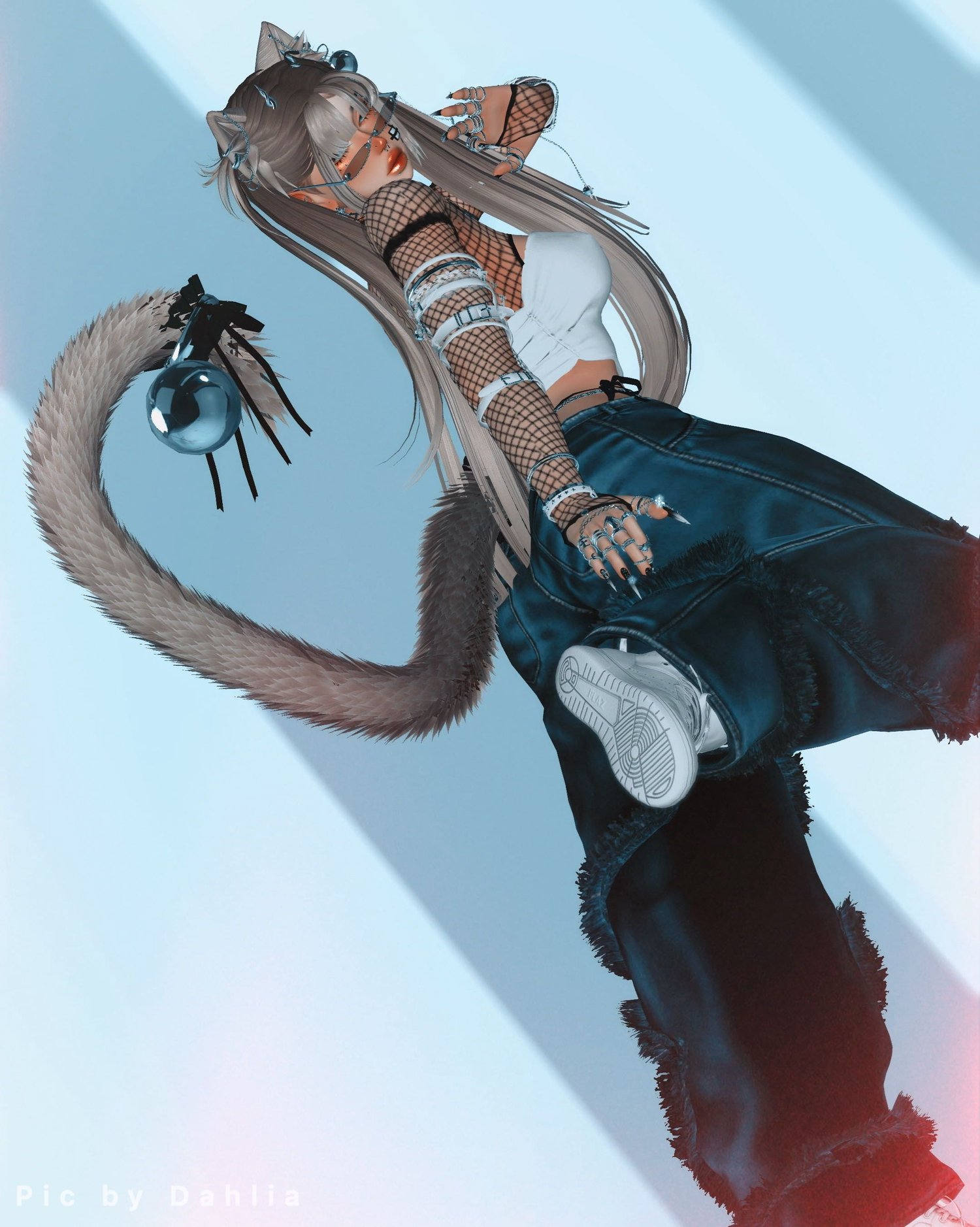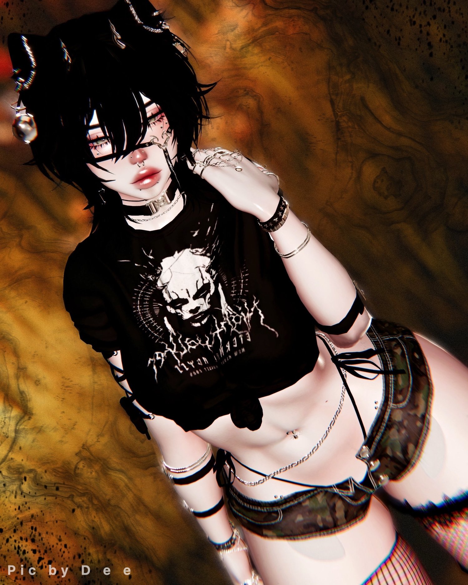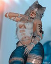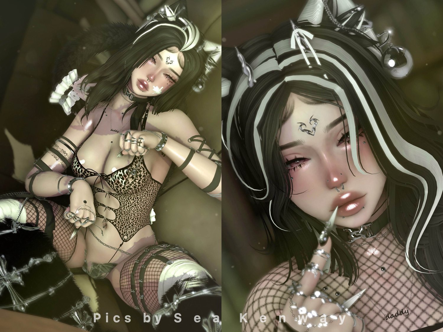 Pasties, lace garter, body piercings, arm & leg warmers, necklace, cat tail, cat ears,