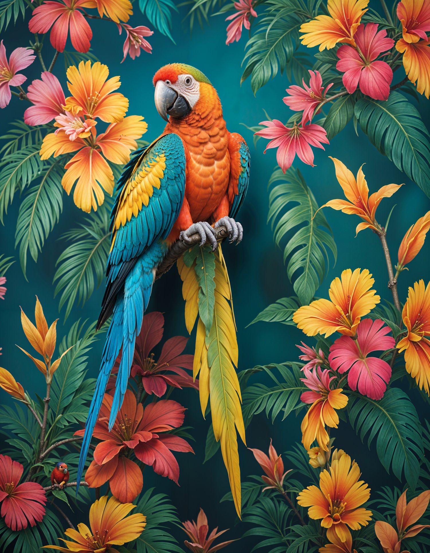 looking for something that would give your place a colorful vibe, good energy and positivity, the feathered jester(parrot) wallpaper, frame photo will be the best.