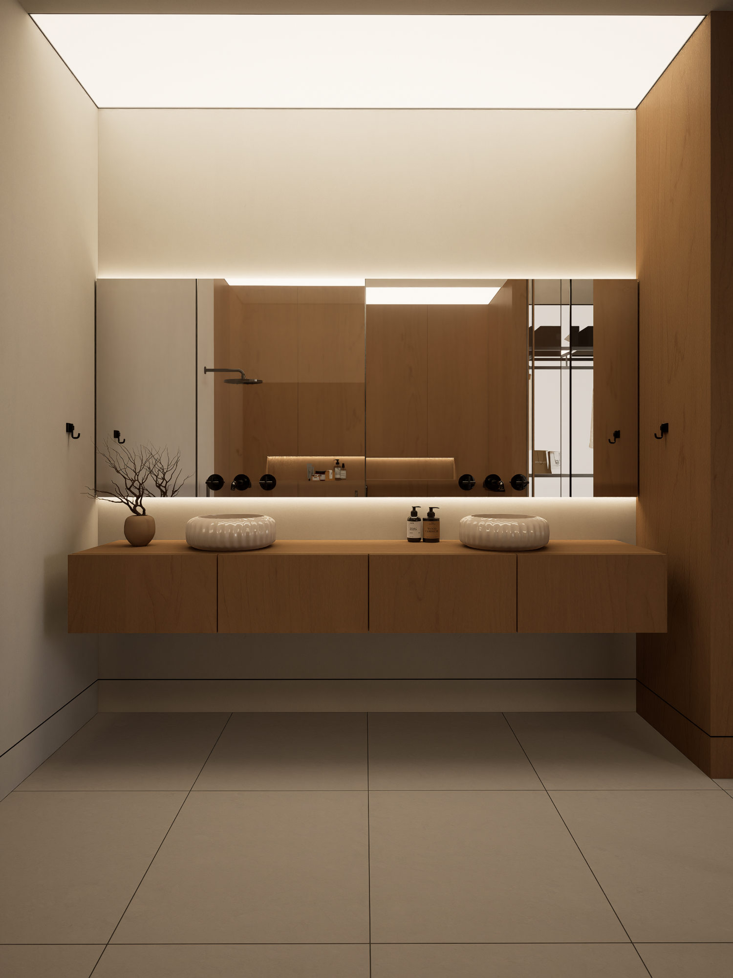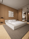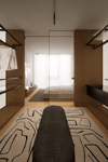 Step into Through the Glass, a warm and modern bedroom-to-wardrobe suite that flows seamlessly into the bathroom.