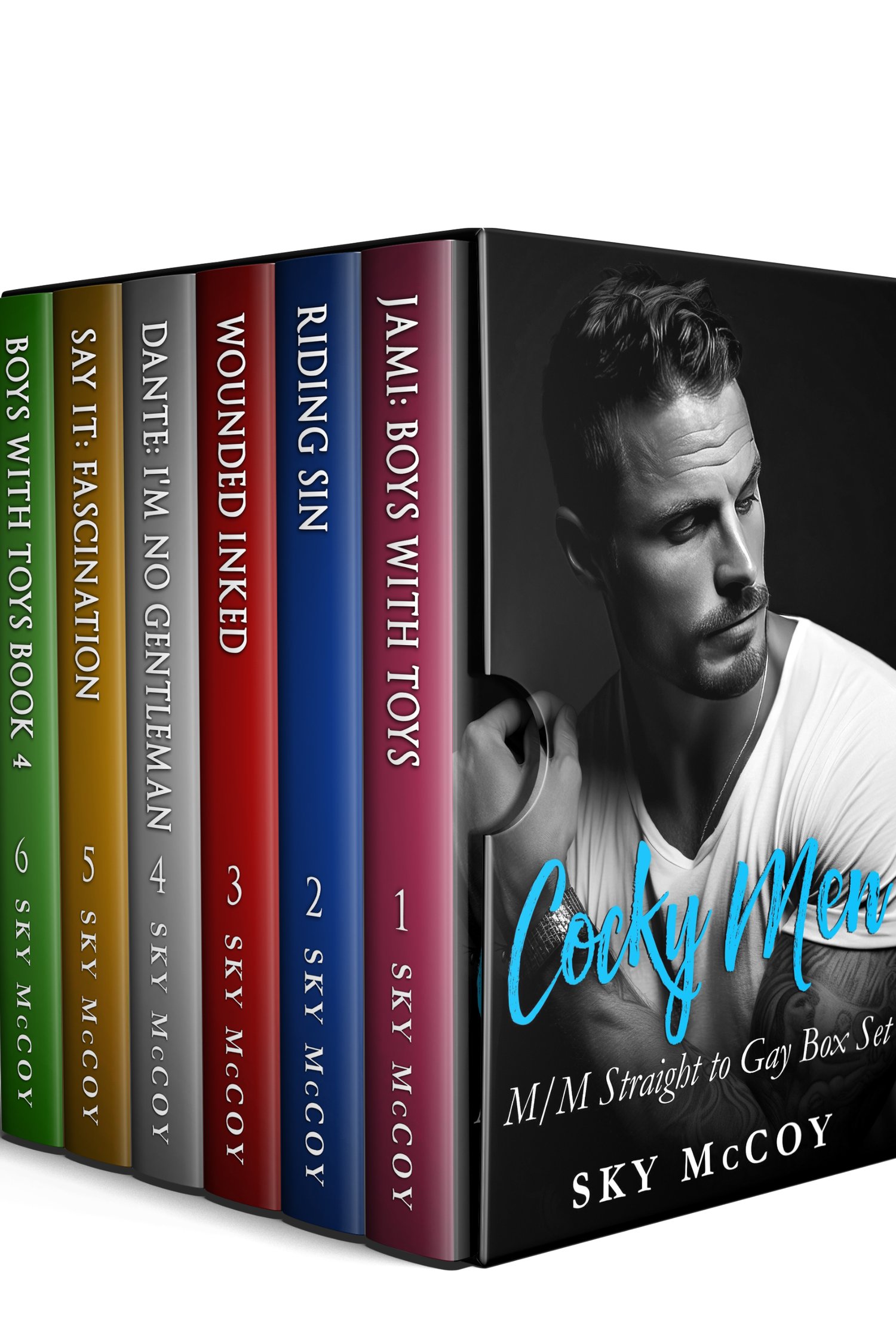 “Cocky Men” is an anthology that features a selection of 6 full-length novels by Sky McCoy, all of which are part of a interconnected series consisting of 3 books in that series. This collection of M/M gay novels explores various narratives centered around the theme of how men who were once straight handle the transition from heterosexuality to homosexuality.