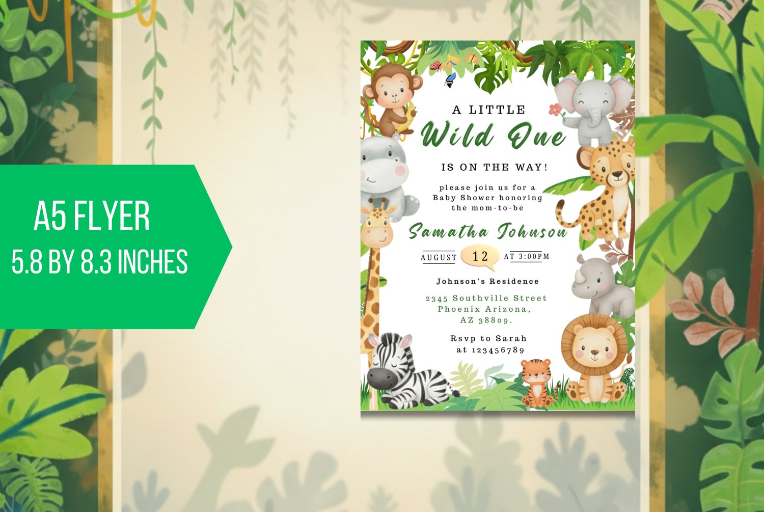 Step into a sweet and playful jungle adventure with our Little Wild One Baby Shower Flyer. Designed with soft watercolor animals, lush greenery, and calming earthy tones, this flyer creates a warm and charming safari-themed celebration.