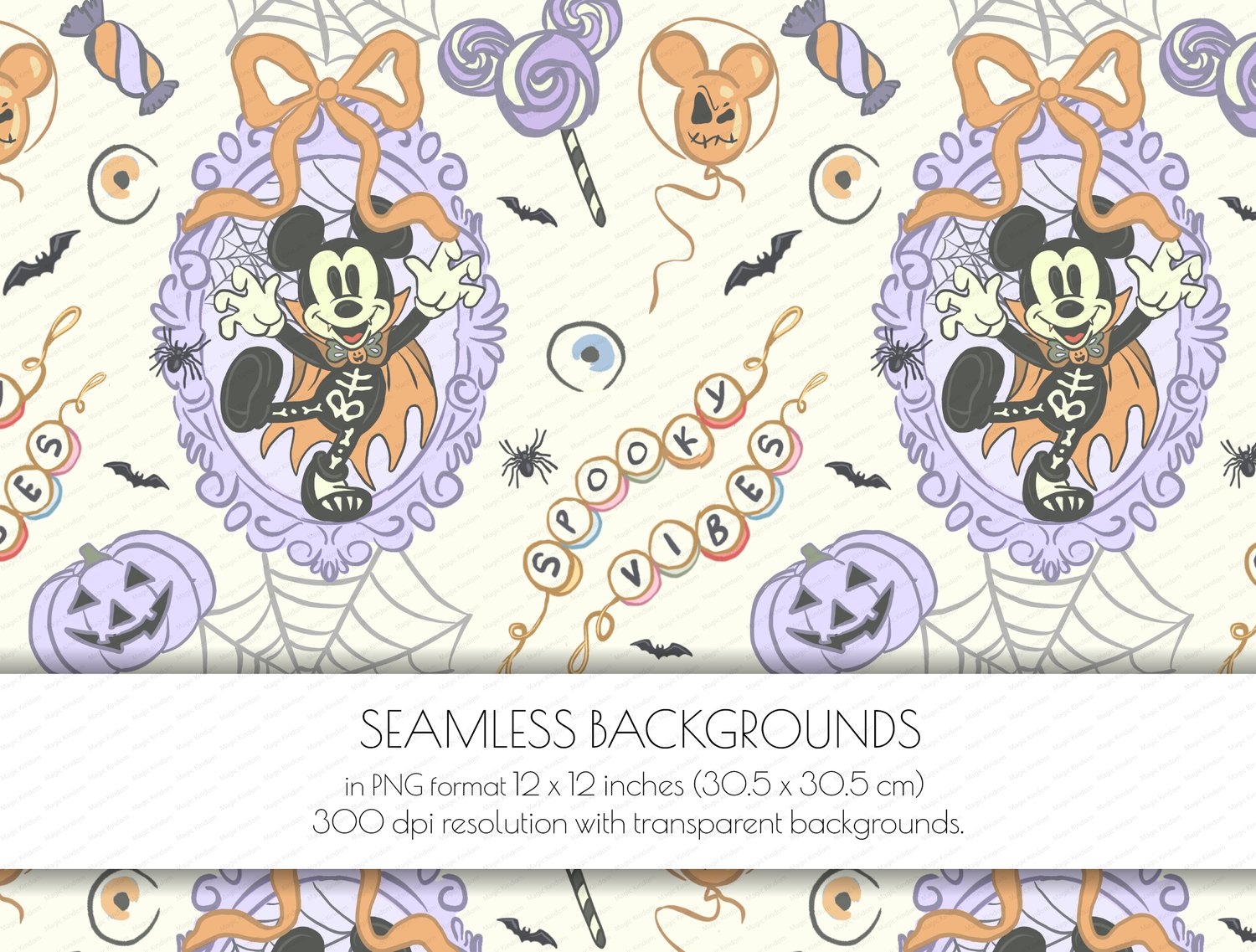 1 Spooky mickey, nightmare on main street Seamlessbackground PNG format 12 x 12 inches (30.5 x 30.5 cm) 300 dpi resolution .